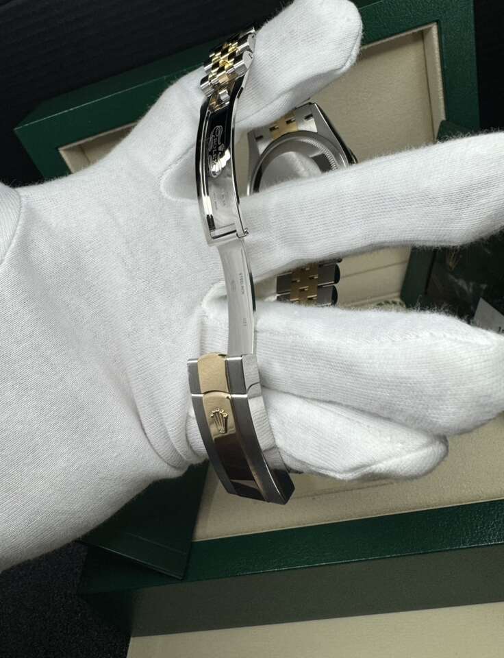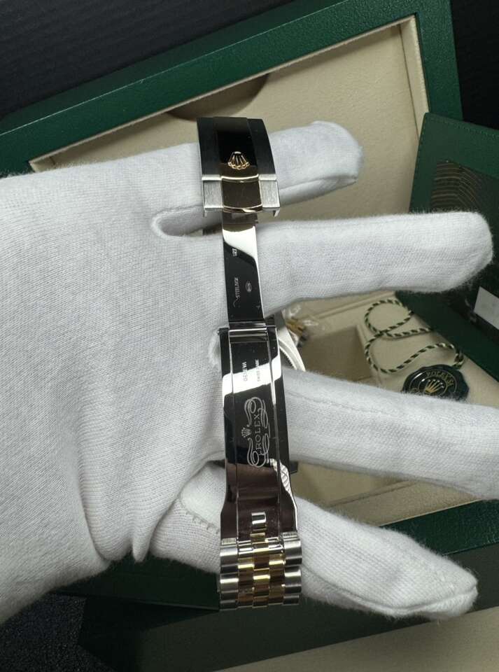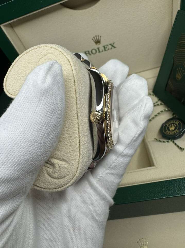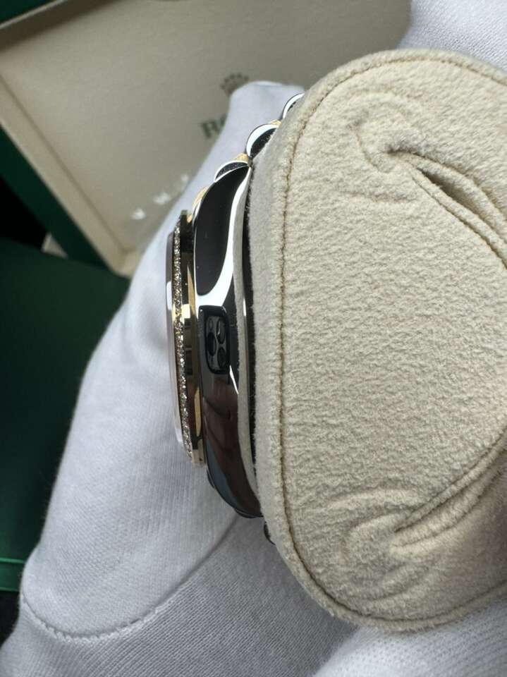 Case: Stainless steel and 18K yellow gold oyster case 36.0 mm in diameter. Rolex logo on 18K yellow gold crown. Bezel: 18k yellow gold original Rolex factory diamond bezel.