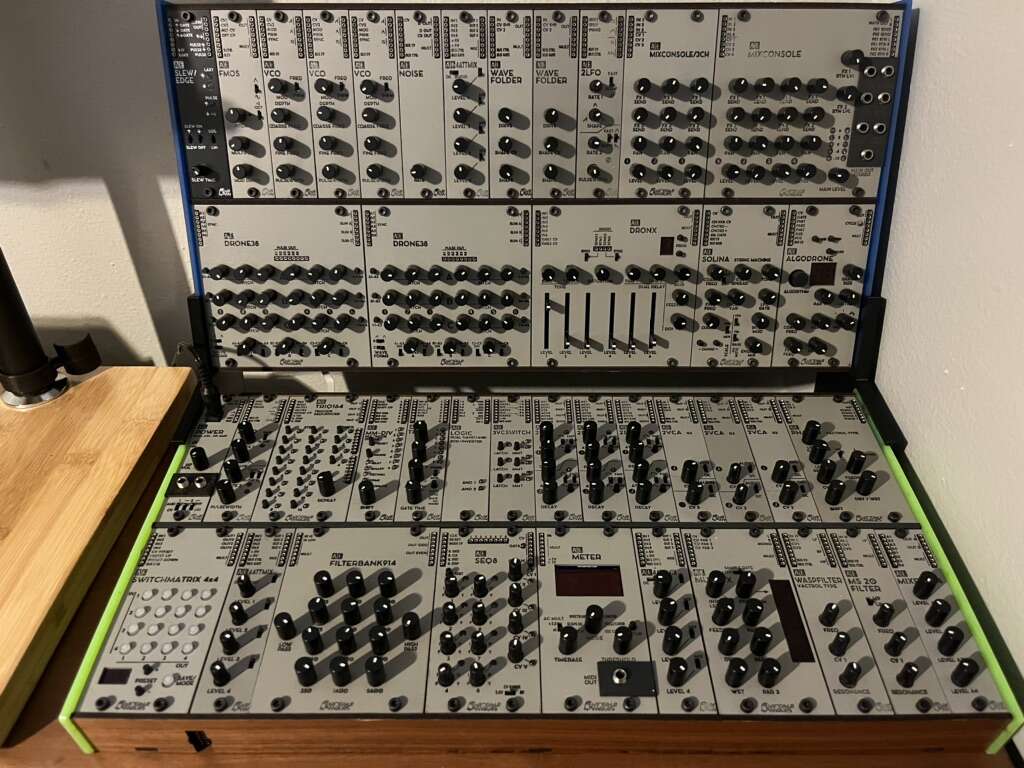 Comes with 41 modules, a blank, plenty of patch wires, cases, a stand and PSU. All for a small fraction of the cost for the Eurorack equivalent.