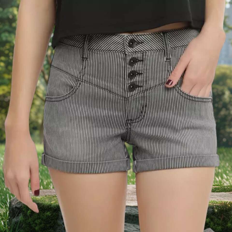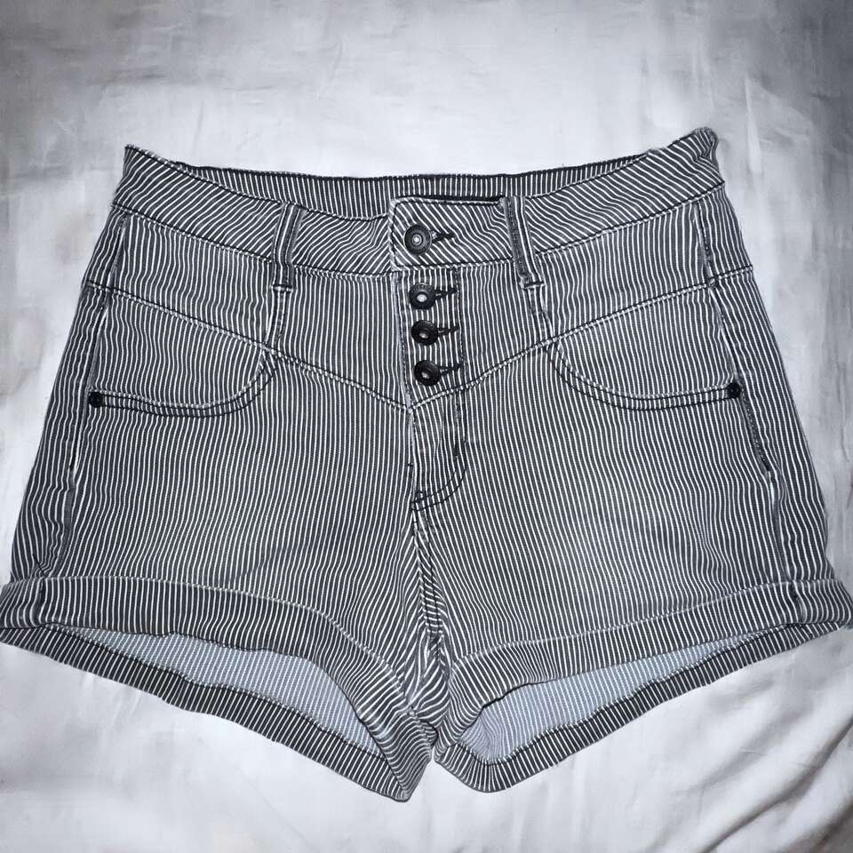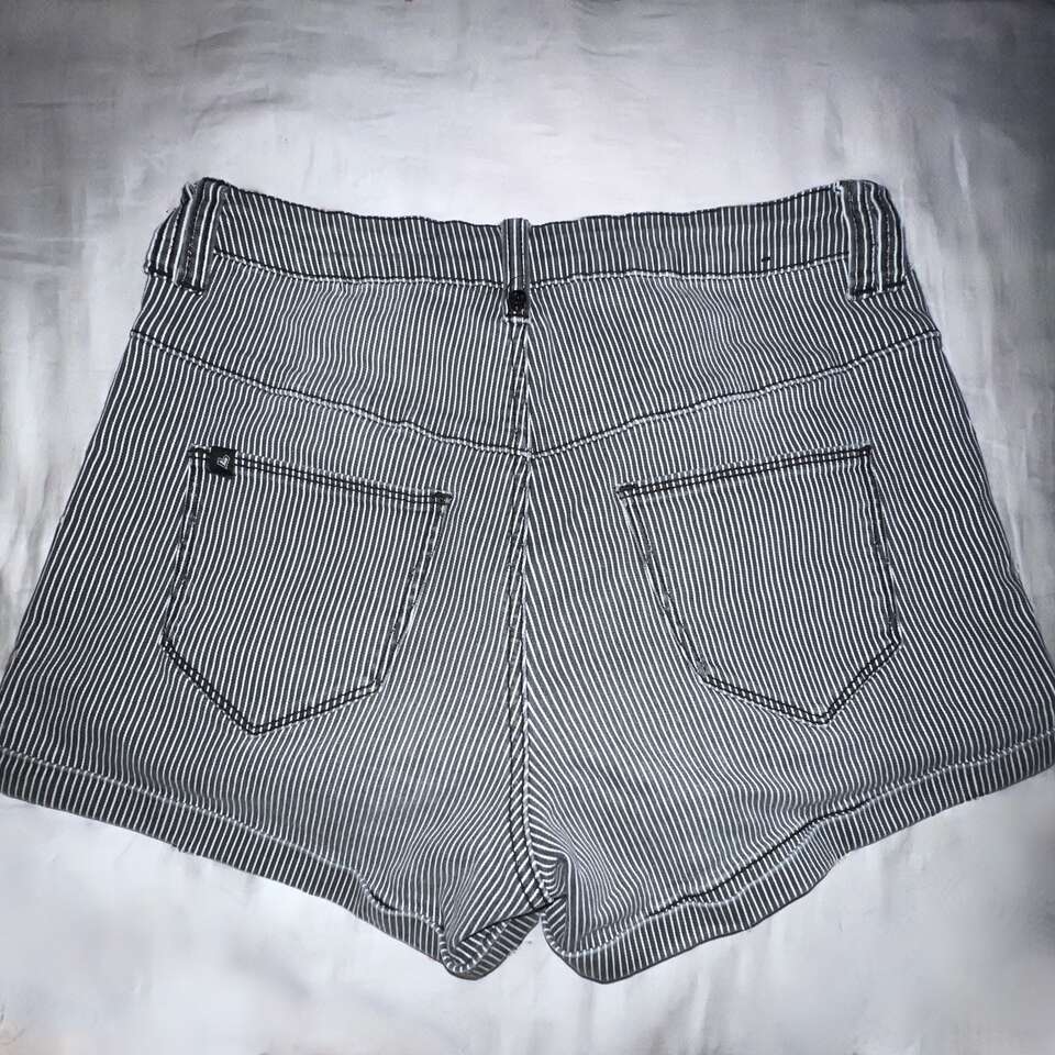VenmoHot Topic Black shorts with white pinstripes. Great preowned condition! High waist Cuffed legs 4-button closure 98% cotton; 2% spandex