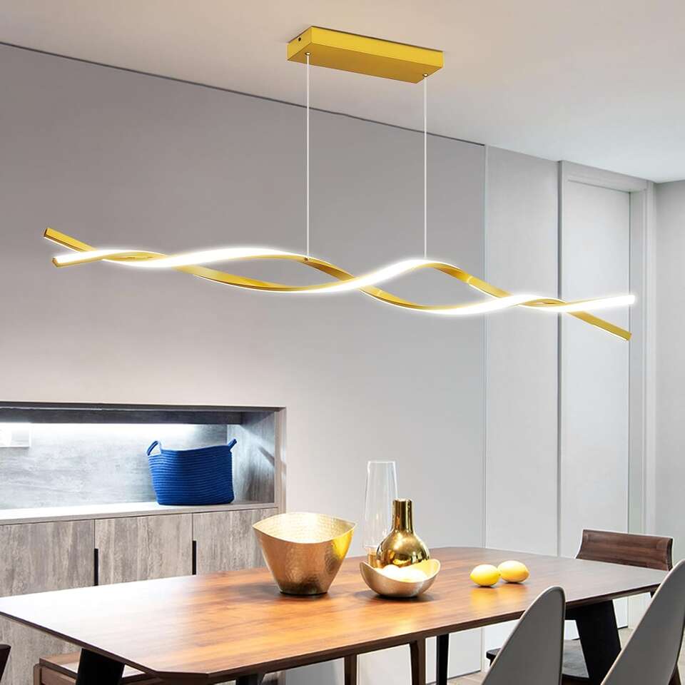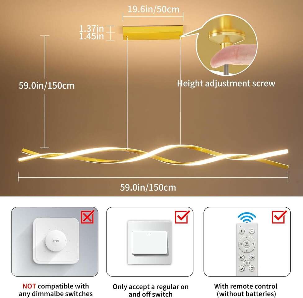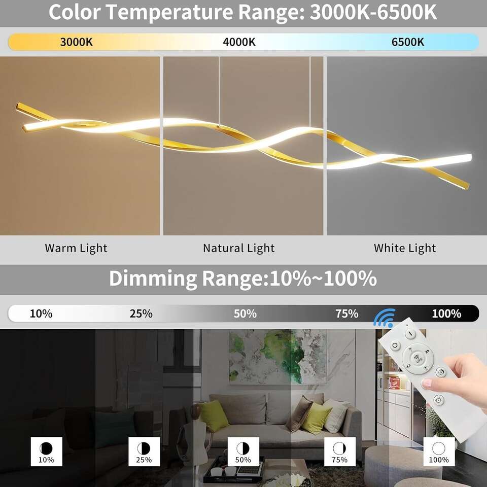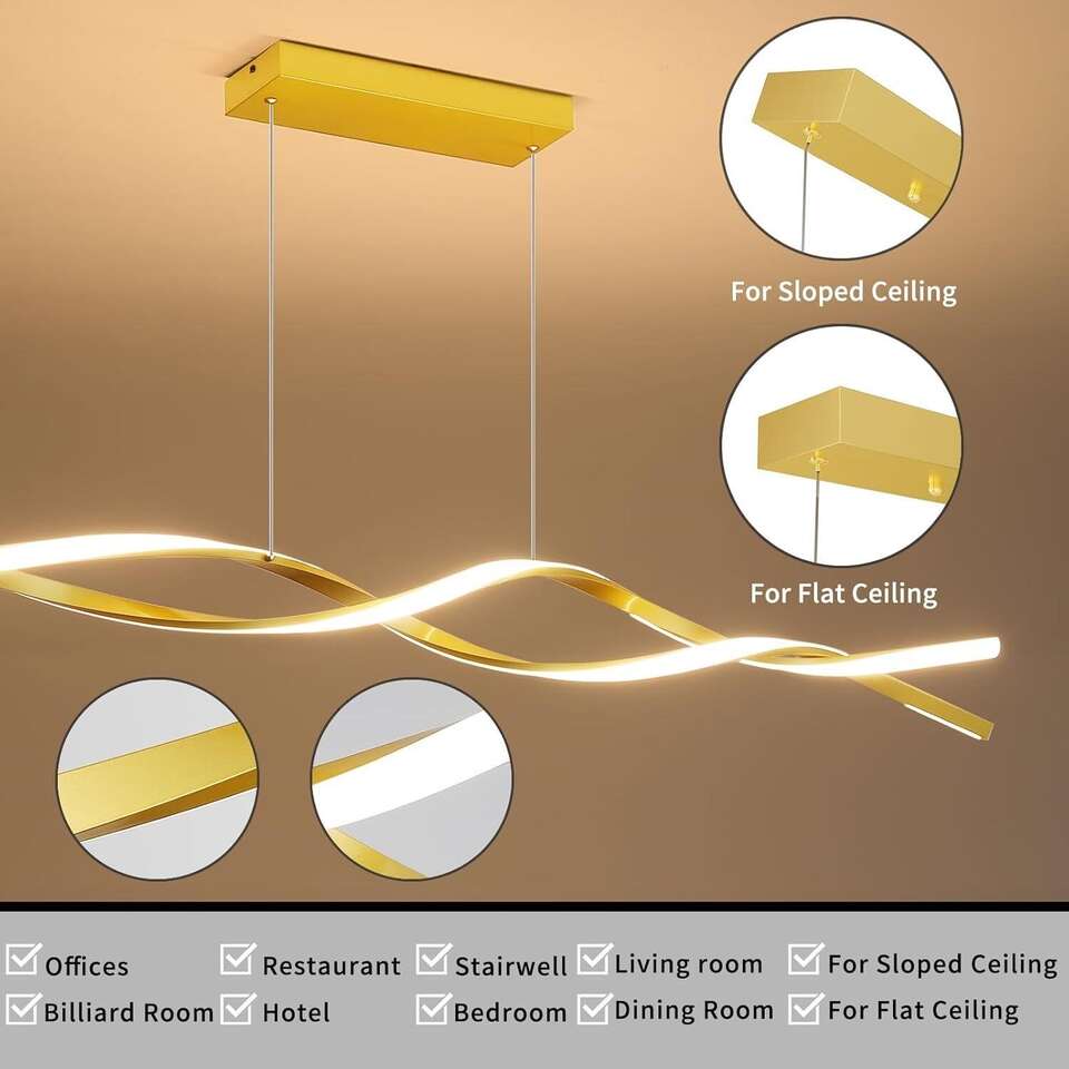 Retailer's Title: Mikeru Modern LED Chandeliers for Dining Room, 59IN Gold Three Color Temperature Modes Modern Chandelier, Wave Pendant Fixtures for Kitchen, Living Room, Bedroom