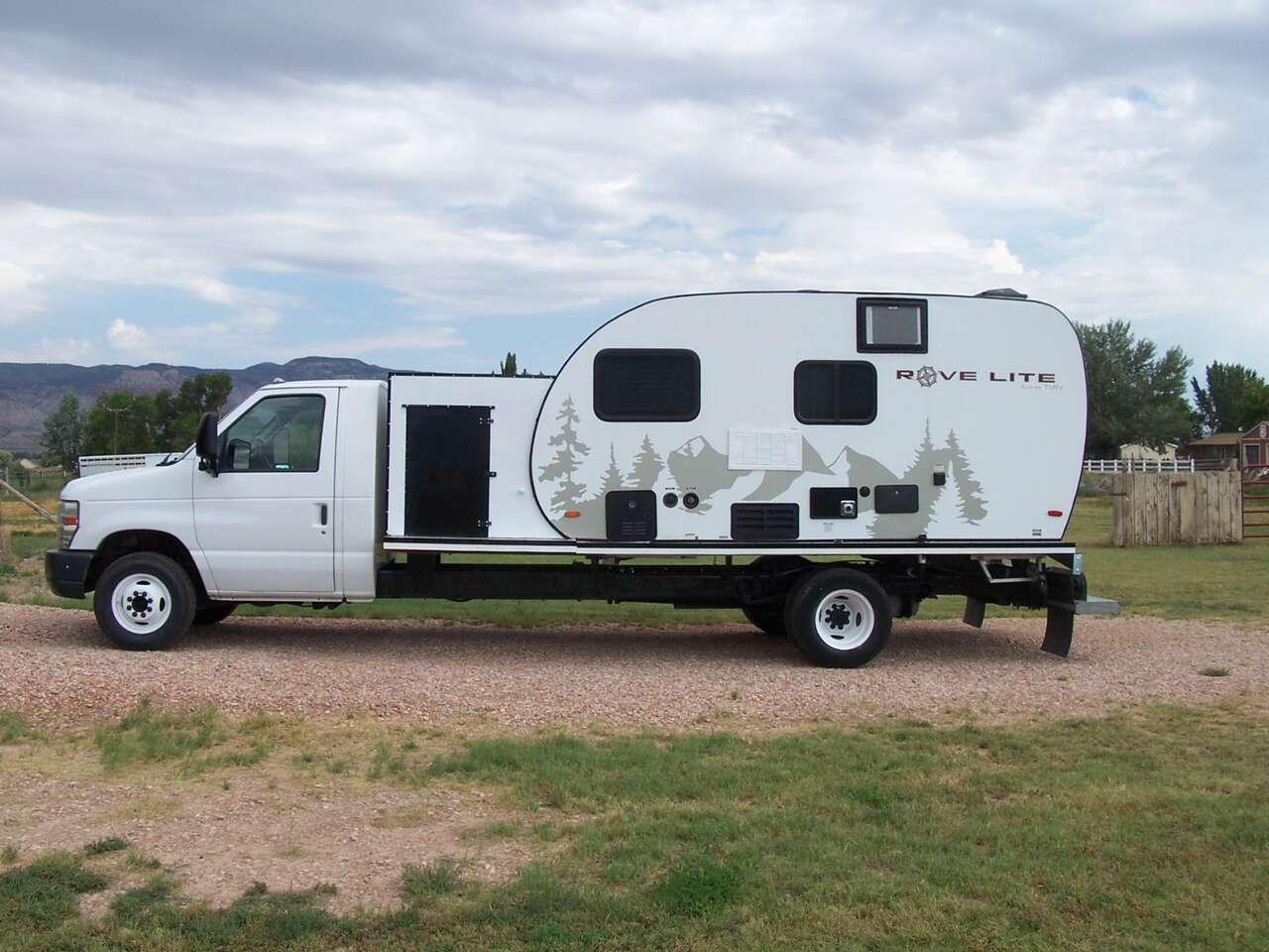 2011 FORD 450. HAS 6.8 SOHC V10 305 HP ENGINE WITH 5 SPEED TORQUE SHIFT AUTOMATIC OVERDRIVE/LOCK OUT TRANSMISSION. HAS 122,850 MILES ON IT. IT HAS A 6000 LB TOWING CAPACITY. THE CAMPER SETTING ON IT IS A 2022 14' ROVE LITE FULLY CONTAINED (BLACK AND GRAY WATER TANKS), AC, TANKLESS WATER HEATER, FURANCE, FRIG, INSIDE AND OUTSIDE SHOWER, 2 BURNER STOVE AND A MICROWAVE OVEN. HAS LOTS OF STORAGE BOTH INSIDE AND OUT SIDE. THE STORAGE BETWEEN CAB AND CAMPER IS 4'X6.6 CONTAINS THE BATTERY, PROPANE TANK PLUS A 45 GAL SPARE WATER TANK.