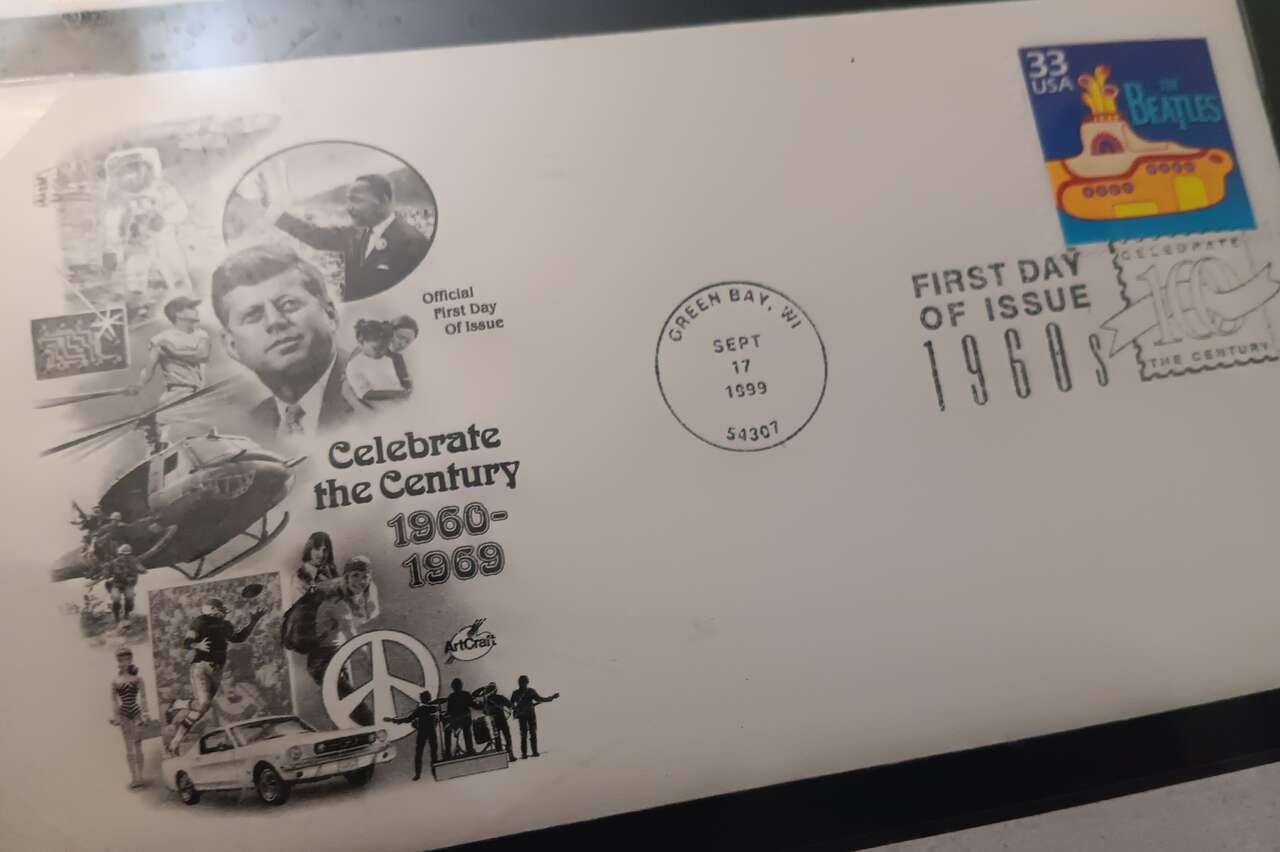 VenmoThis framed first day cover and single 33 cent USA stamp featuring Scott 3188O is a must-have for any Beatles fan and music memorabilia collector. The item showcases the iconic band's impact on the rock and pop music genre and their popularity in the United States. The original and authentic piece of entertainment memorabilia is perfect for display in any home or office. It is a great addition to any collection of Beatles memorabilia and a valuable item for any fan of the band. The frame is acrylic and 2" depth by 15" by 12' (approximately) all MNH inside. Includes iconic picture of the Beatles.