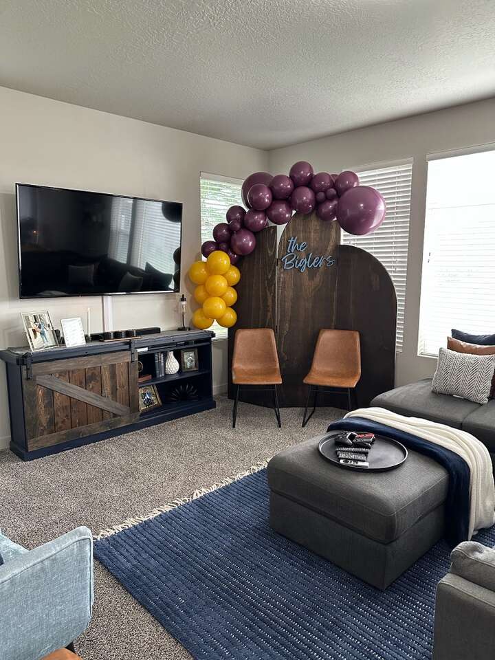 This wooden wall backdrop is stained with the Minwax color Dark Walnut.
