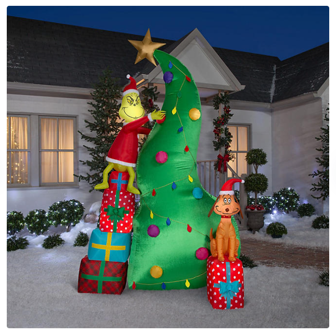 The Grinch and Max Airblown Inflatable includes everything needed for an easy setup and is quick to take down and store. Simply unplug the Grinch and Max Decorating Tree Airblown Inflatable and store it in the original box that it came in.