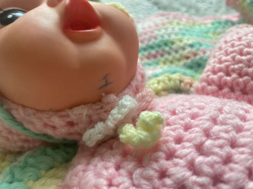 Vintage Crocheted Baby Doll Has some pen on chin see pic Cash or Venmo Pickup West Jordan