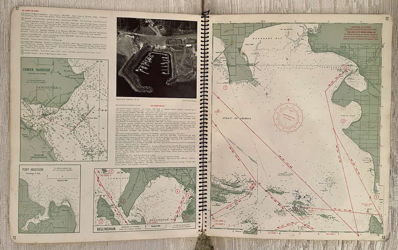 Some wear and writing on the charts. An inch of the spiral is missing on bottom left. Pages still turn and lie flat easily (see photos).