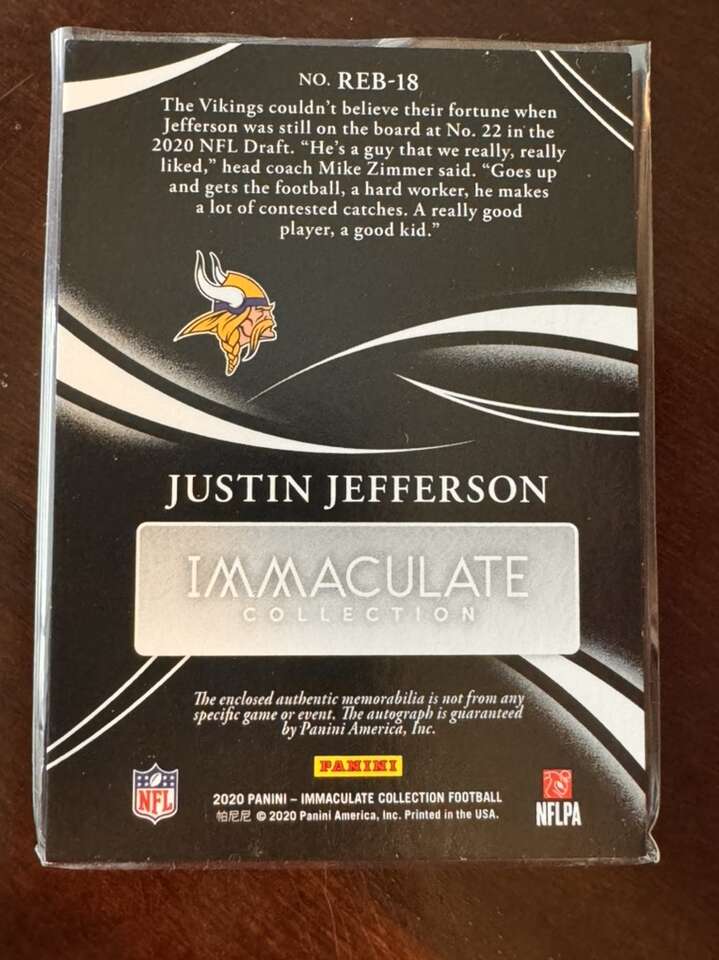 2020 Immaculate Eye Black Jersey Justin Jefferson Rookie Patch Auto /99
