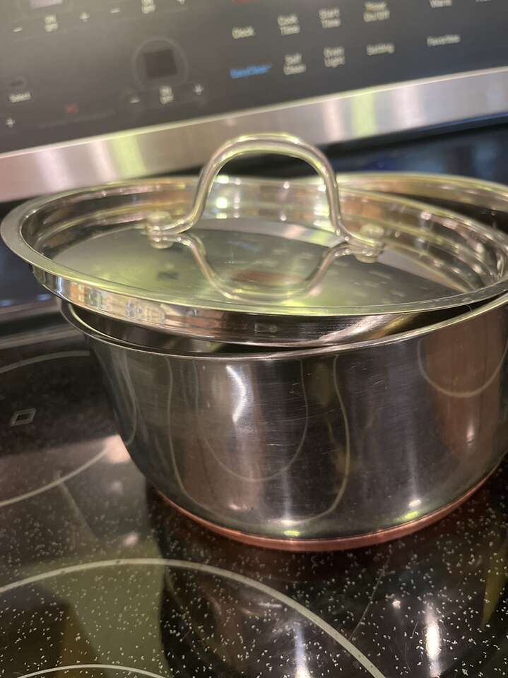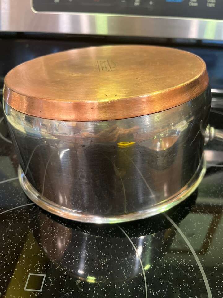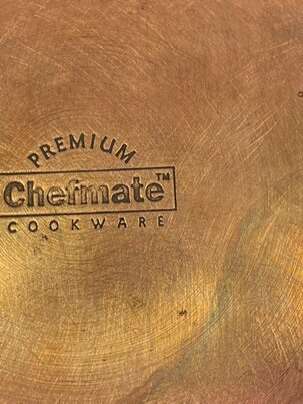Chefmate 15.5” diameter + handle 8.75” rim to rim 4” tall Stainless w copper bottom