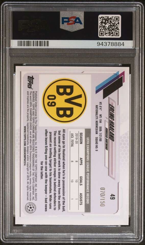 2020 Topps Chrome UCL Sapphire Aqua /150 #49 PSA 9