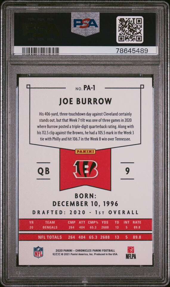 2020 Panini Chronicles Joe Burrow #PA1 PSA 10 Cincinnati Bengals
