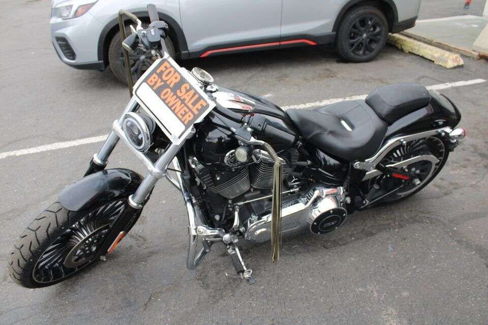 PayPalYou are looking at a 2017 Harley Davidson FXSB Breakout Softail. It is used but in good condition. It does show signs of use with scuffs, scratches, and grime all around the Motorcycle. But nothing too major or too distracting. Just average wear and tear from normal everyday use. The mileage is 9880. Everything appears to be fully functional. The front and back wheels were just replaced and back brakes were just changed. If you would like to check it out, give us a call at 801-972-4385 and we will be happy to help/schedule an appointment for you to come down and see it.