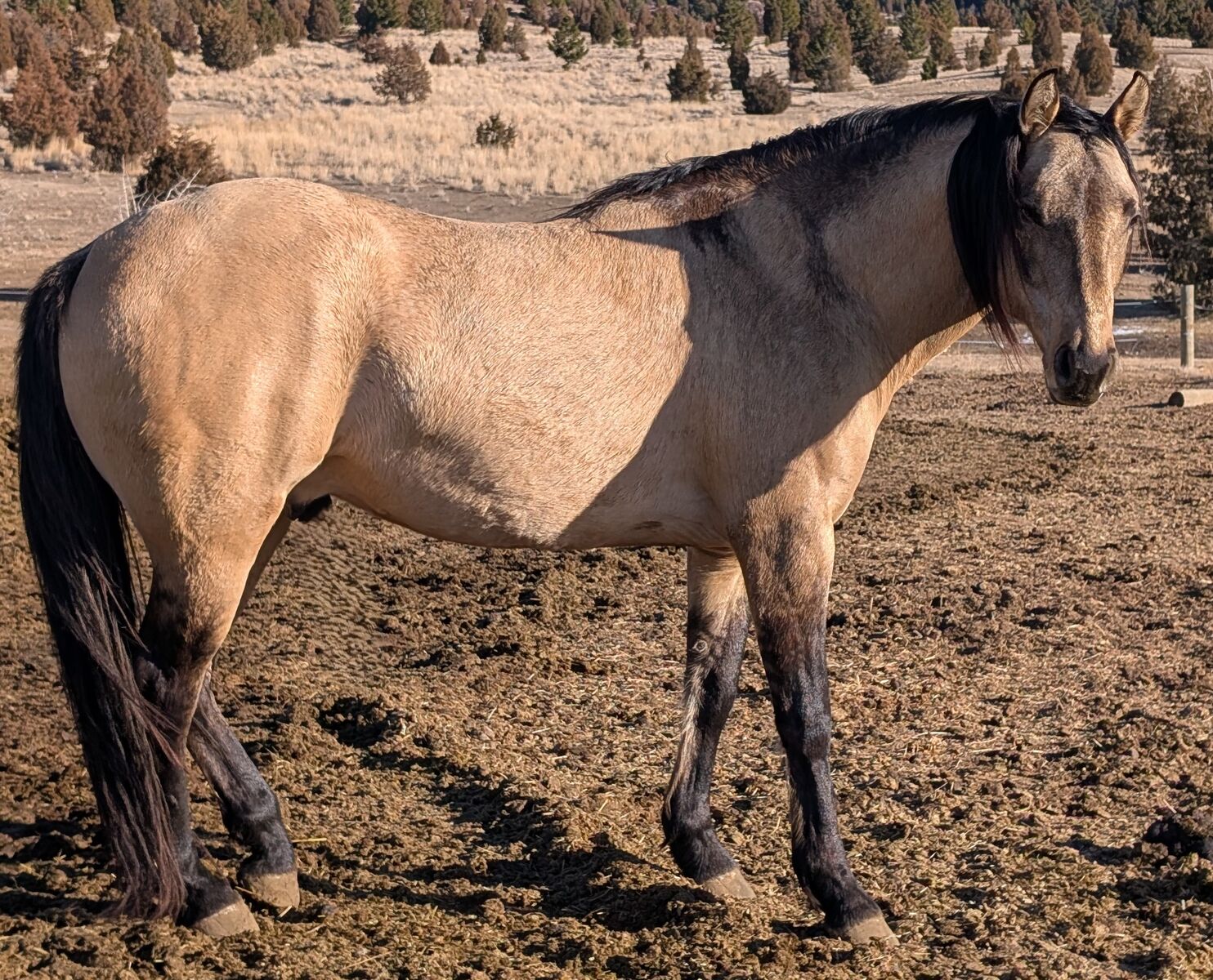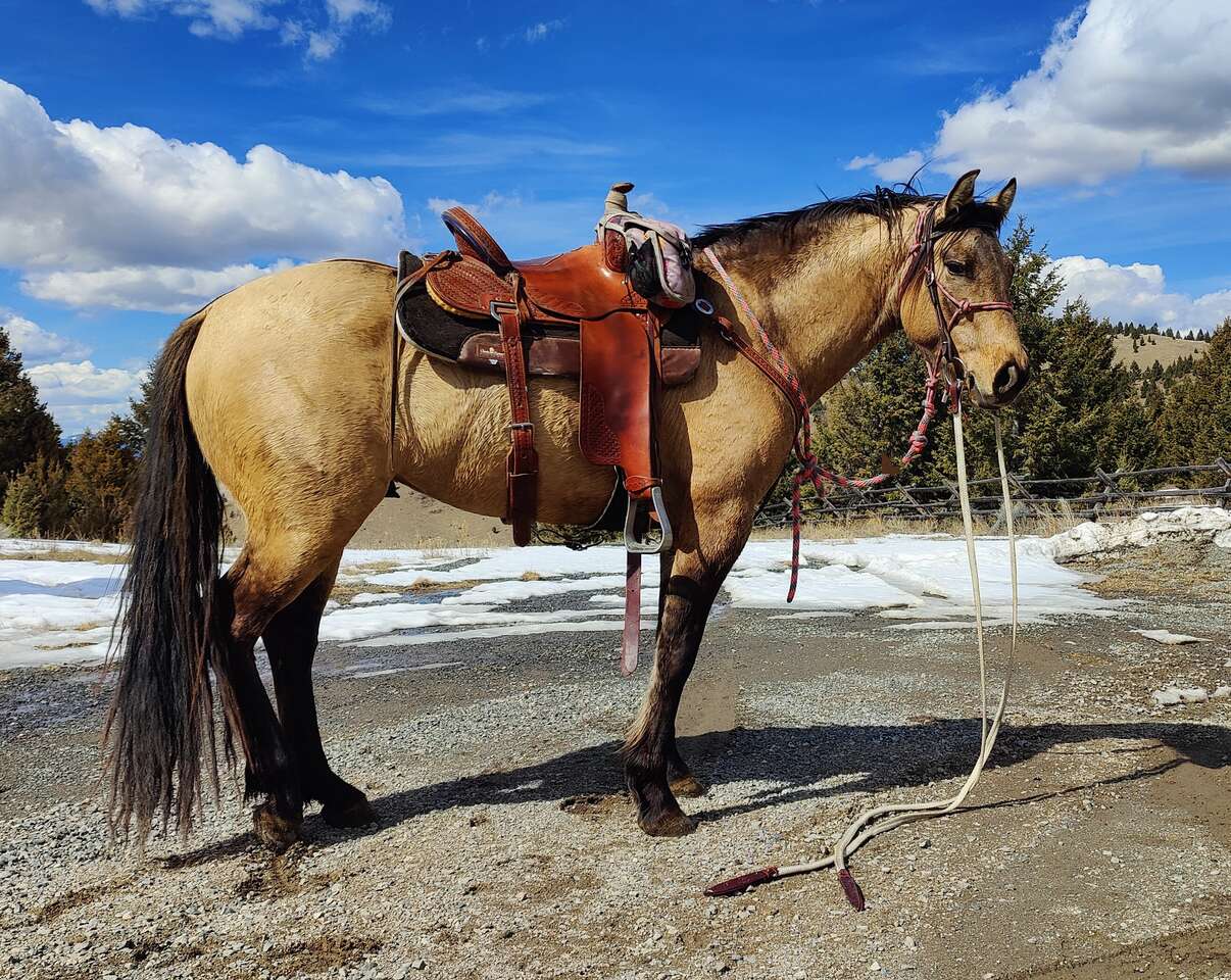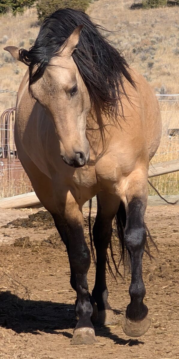 We really love his breeding, the greats speak for themselves and he is well packaged. He stands 15.1 with good thick bone. He has had 90 days professional training and was shown in a few local ranch and trail shows earning some money in each. He has good manners undersaddle around other horses. We hope to get him back in to show shape and compete again as time allows in 2026. He had 2025 off due to owners own pregnancy.