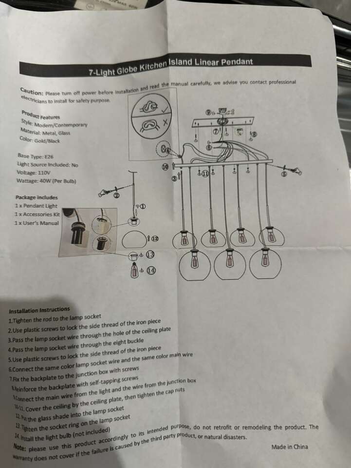 VenmoNew in box 7-Light Cluster Glass Globe Kitchen Island Pendant / chandelier \