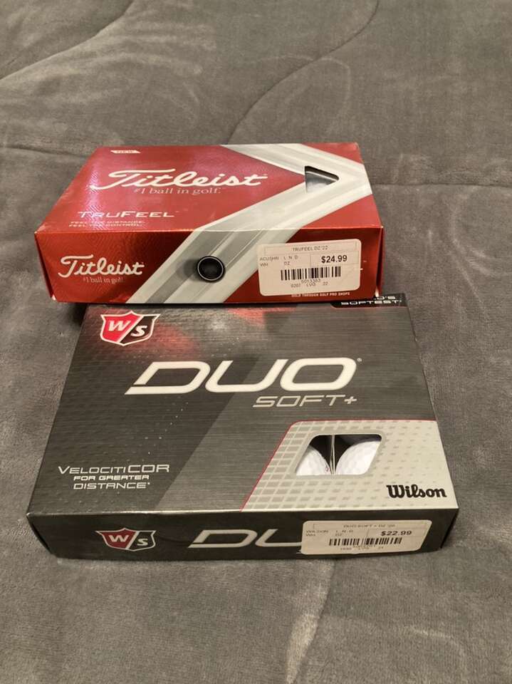 24 brand new golf balls in boxes $10 for both. I also have many barely used golf balls I will give you a deal on if interested, I worked at a course!