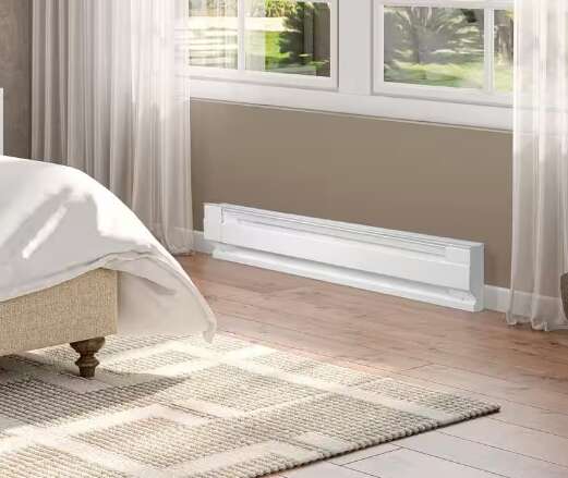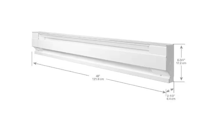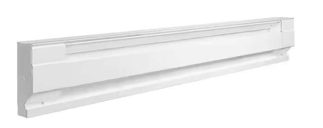 Cadet electric baseboard heaters are a simple and economical way to add quiet, convection heat wherever it's needed in your home. This white 48-inch heater is an industry-standard size making it ideal for replacement or new construction, and is designed for easy installation with pre-punched mounting marks and wiring at both ends. A thermostat is required for operation (sold separately). Be sure to choose the correct heater size for your room. On the chart below, find the area size you want to heat and then select the corresponding wattage. Proudly made in the USA.