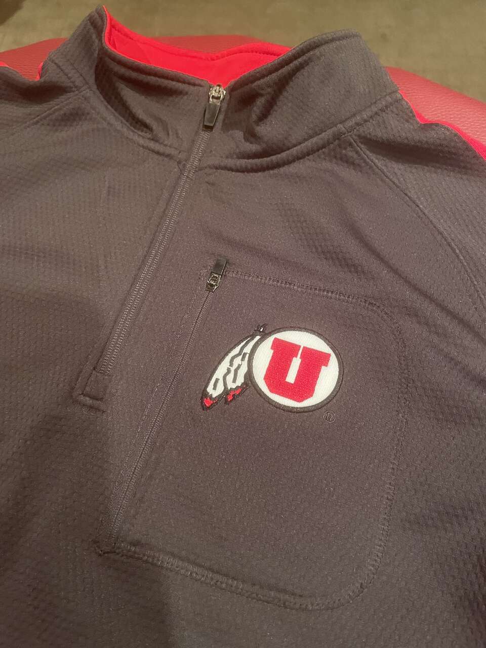 New, without tags. Tags were removed and it's been folded up in a drawer. It's a nice Utah Utes quarter zip pullove in Men’s XL