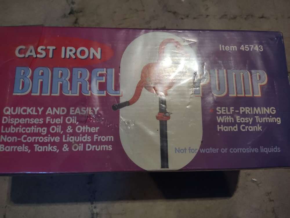 Cast iron barrel pump brand new in container seal, Quickly and easily pump fuel oil, lubricating oil and other non-corrosive liquids from barrels, tanks and drums. The barrel pump is self-priming with an easy-turning hand crank and can transfer 10 gallons per minute. Call or text 801-403-5538. $20 cash, no venmo