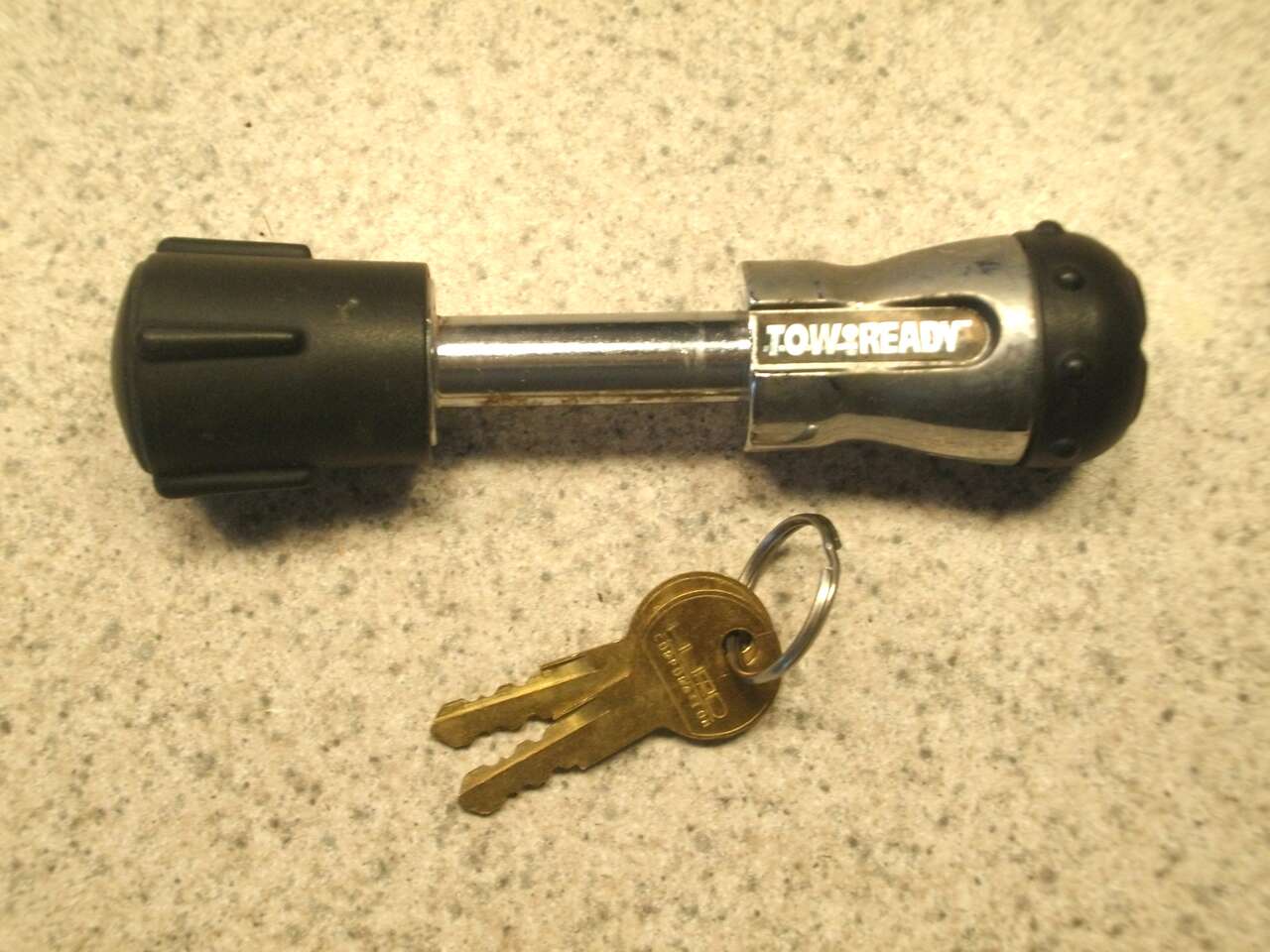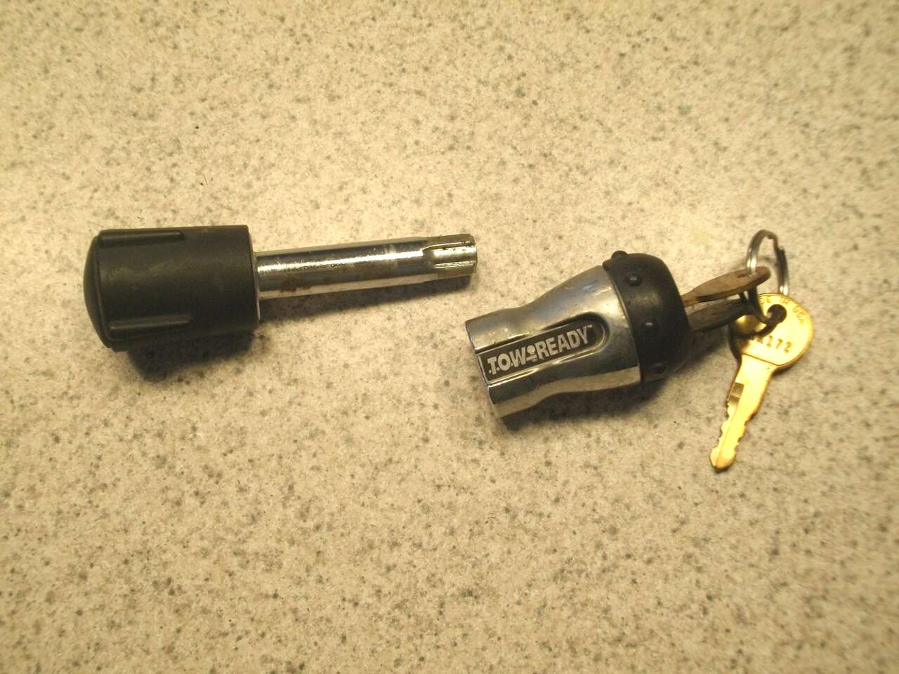 1 1/4" hitch and pin. 3/4" ball hole. Ball not included. Extra locking pin with keys included. No texts please.