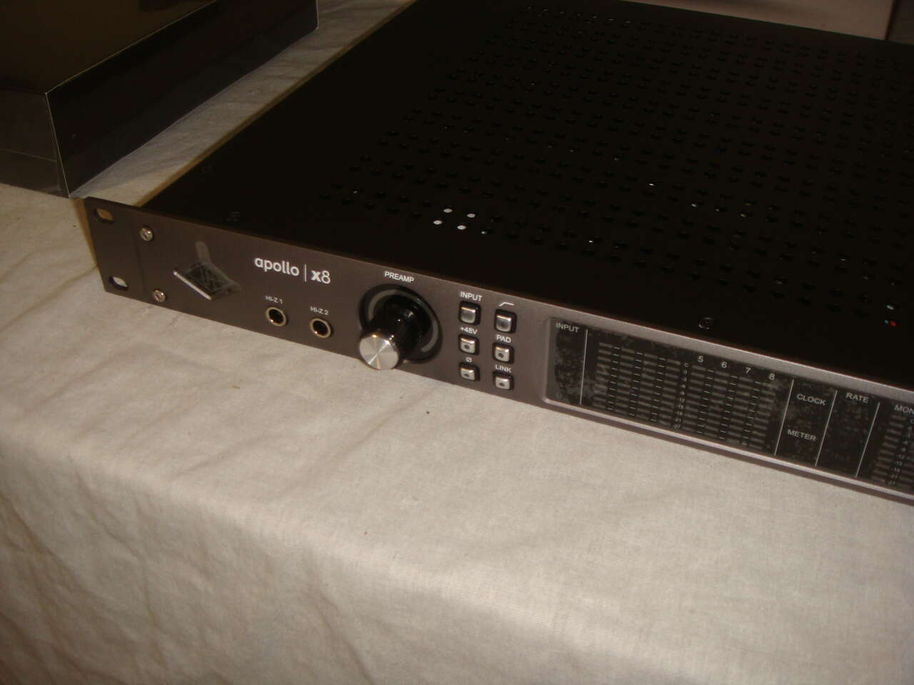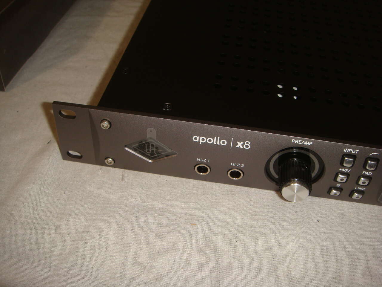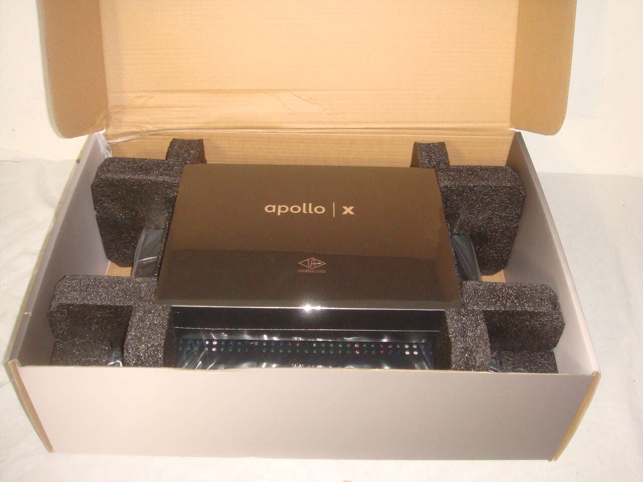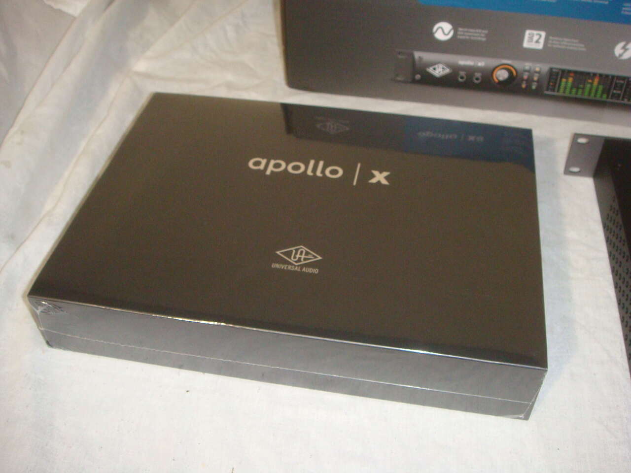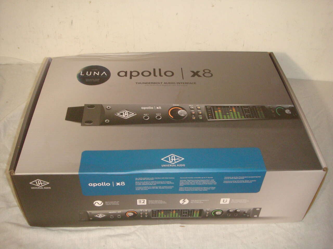 BRAND NEW UNIVERSAL AUDIO APOLLO X8 18x24 THUNDERBOLT 3 AUDIO INTERFACE WITH FREE LUNA RECORDING SYSTEM SOFTWARE, & HEXACORE ACCELERATION & REALTIME UAD DSP PLUG-INS. This is a brand new, open box item that has never been used. The original box was very slightly distressed, but not in a spot where it touched or caused any harm to any of the internal items. The unit is brand new with the original plastic still on the screens and the accessories/sofware box is still sealed. It comes with everything shown as new. This is your chance to save big-time so don't miss out!!