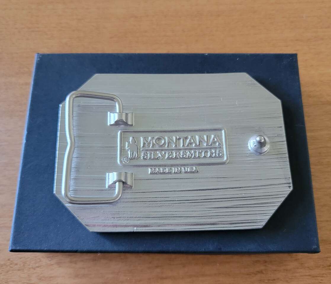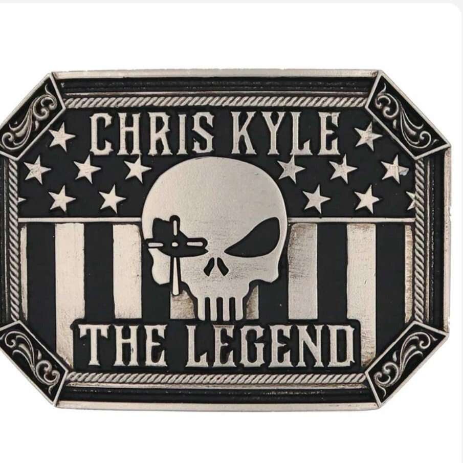 This is a Montana Silversmiths belt buckle, Chris Kyle, The Legend. It measures 4"x3". This buckle has a standard 1.5 inch belt swivel. It comes in a gift box.