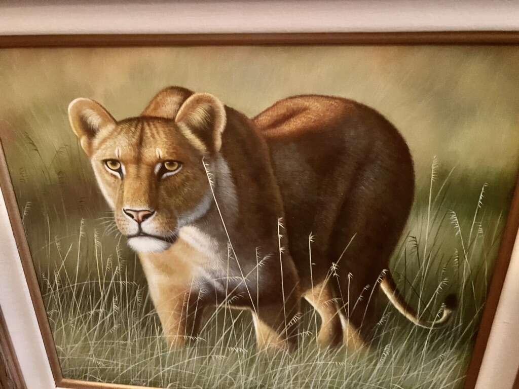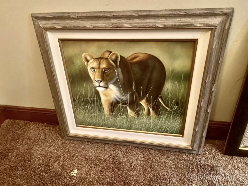 Lion Oil Painting $50 Wood frame 3”W 33”W x 29”H Painting size 24” x 20”