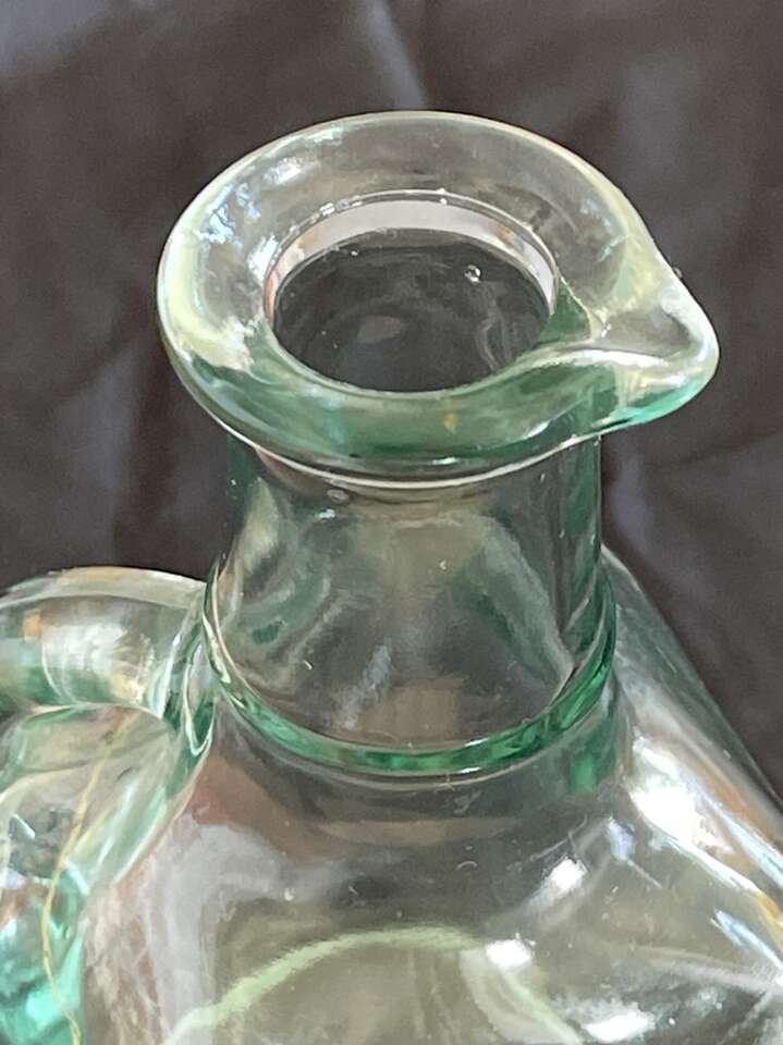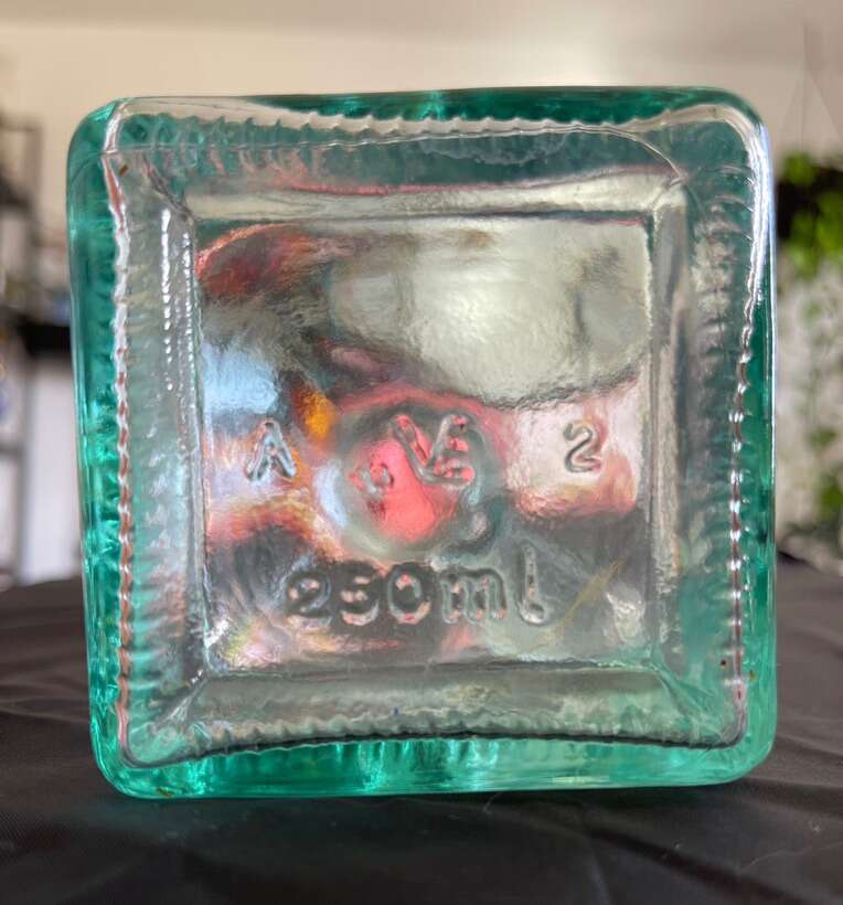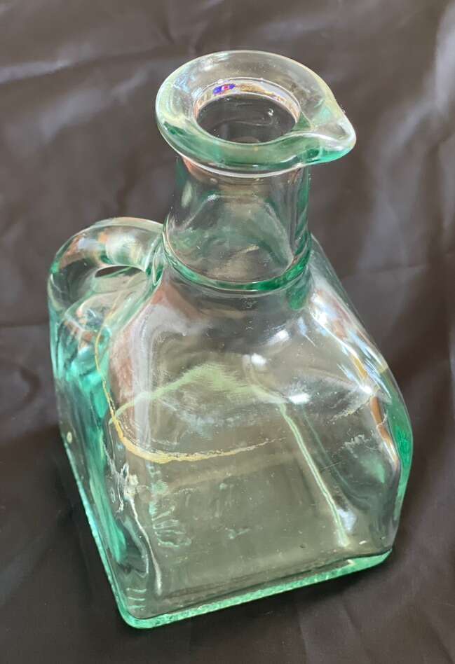 Vintage Small Square $5 Bottom Green/ Glass Olive Oil or Vinegar Bottle 5.5