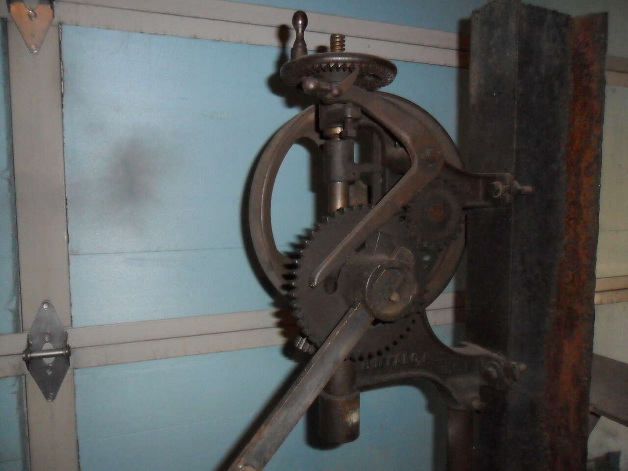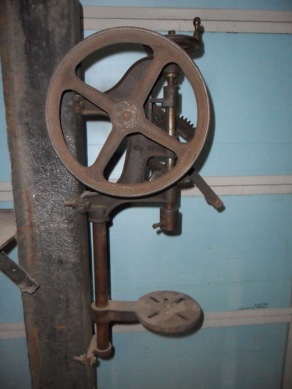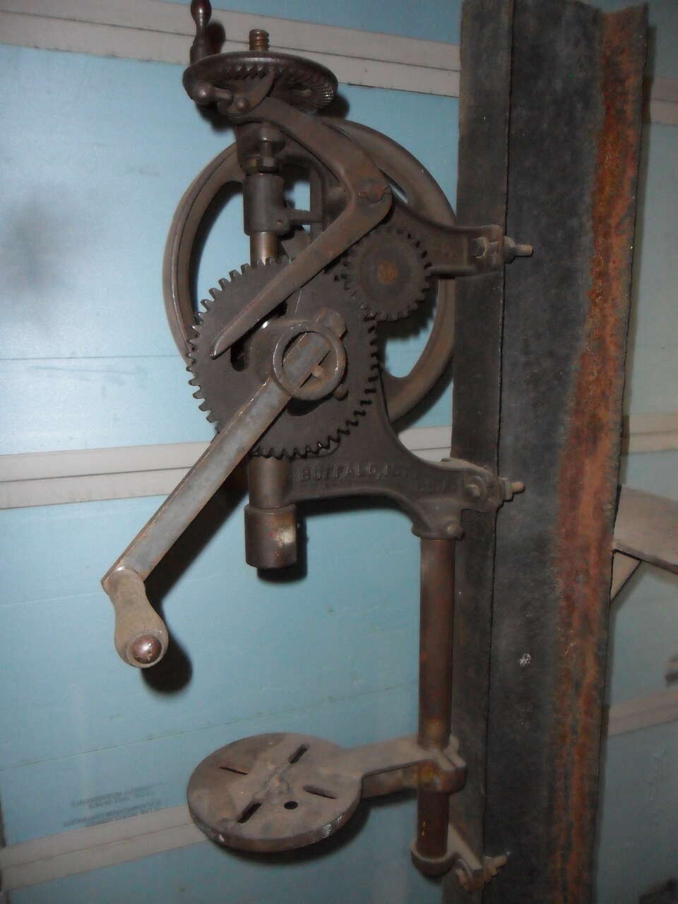 This old BUFFALO FORGE #61-R is over 100 years old and still works as smooth as the day it was made. It can be left on the I-beam it's mounted on or removed and mounted on a wall or post. The original chuck can easily be converted to hold modern drill bits. A great working addition to any shop or garage. Thanks for looking.