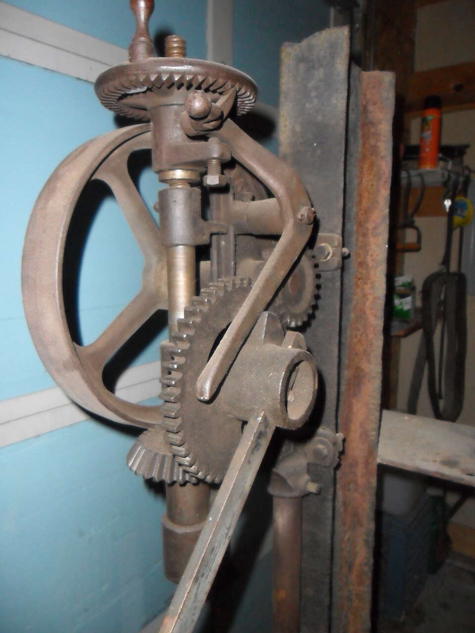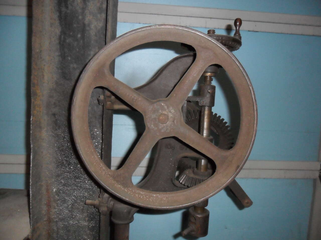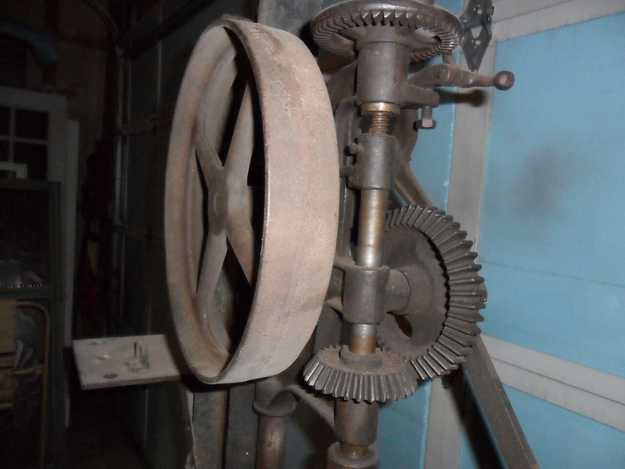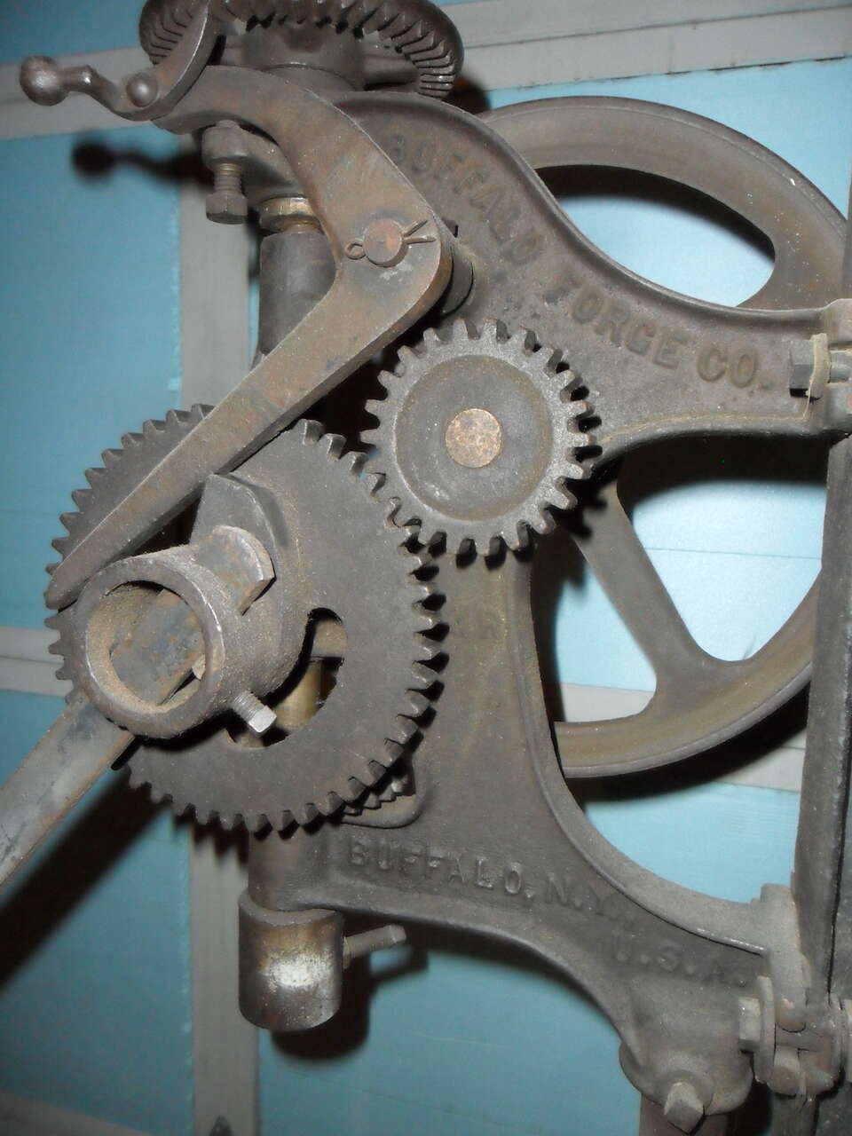 This old BUFFALO FORGE #61-R is over 100 years old and still works as smooth as the day it was made. It can be left on the I-beam it's mounted on or removed and mounted on a wall or post. The original chuck can easily be converted to hold modern drill bits. A great working addition to any shop or garage. Thanks for looking.