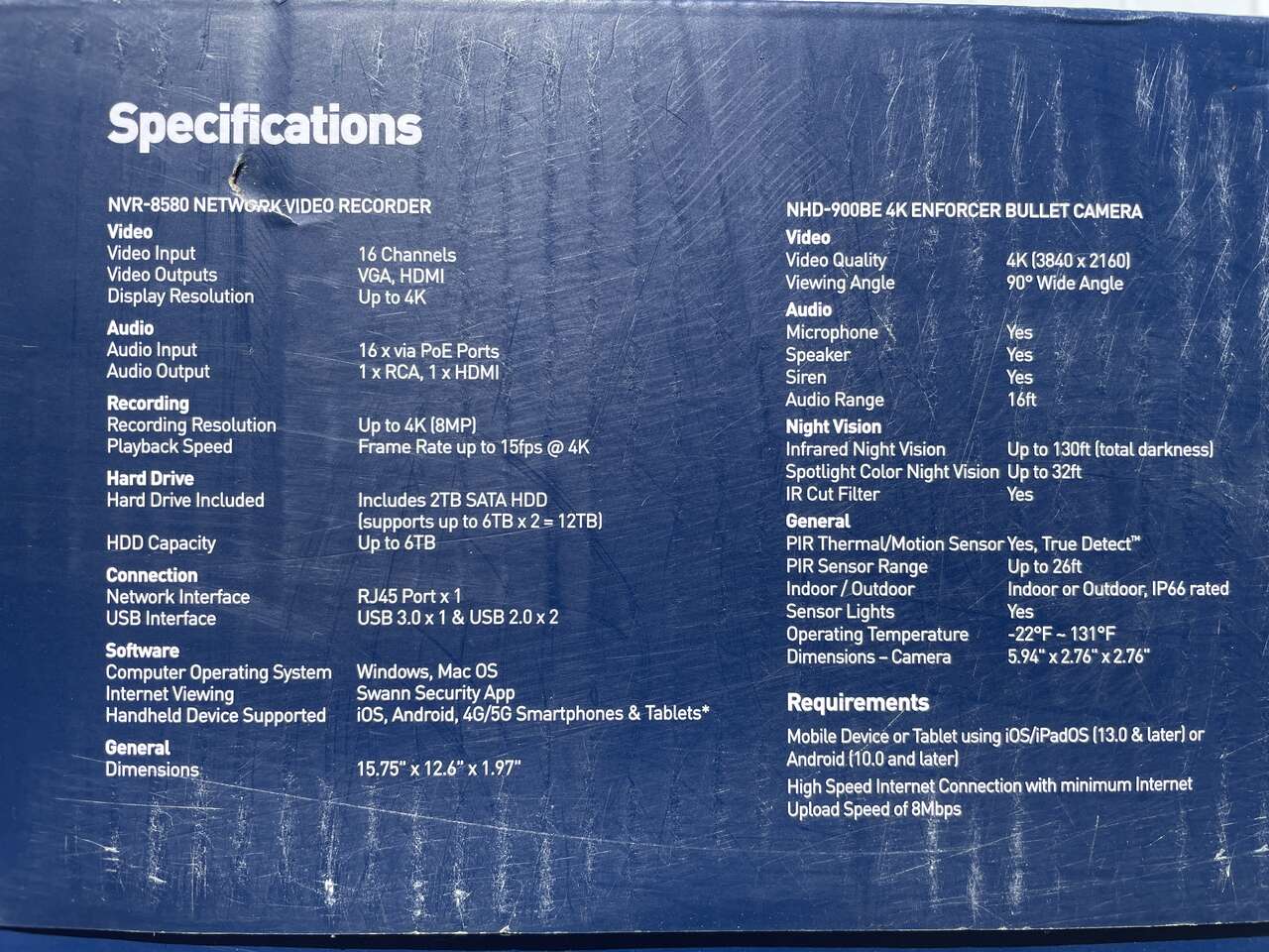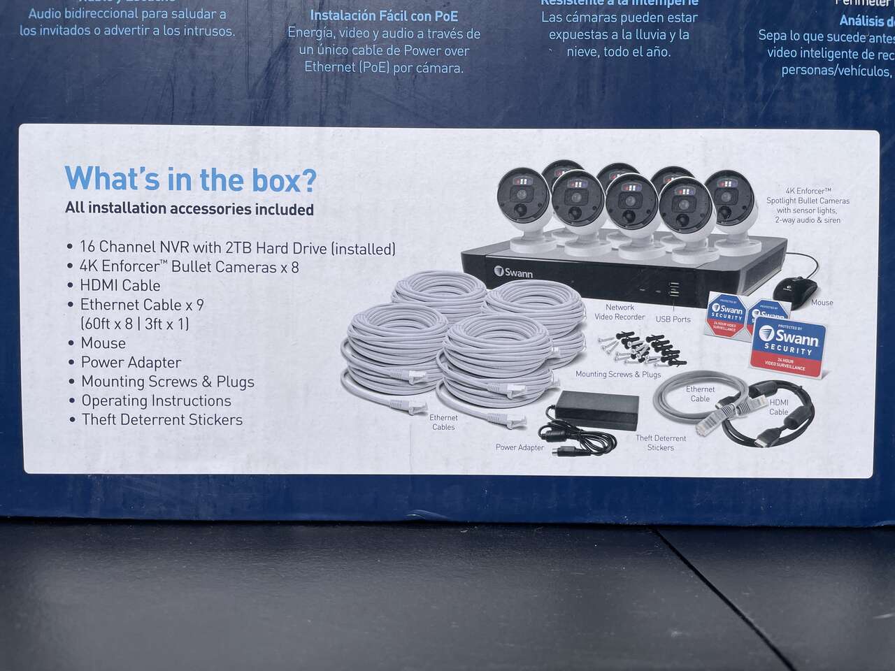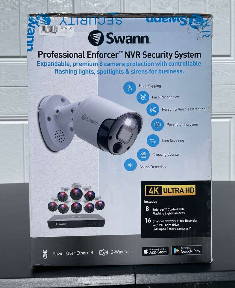 Up for grabs is a NEW Swann 16-Channel 8-Camera 4K PoE NVR Security System. This system is new and in the original packaging. I have a few sets available. Some sets may have damaged boxes, but you're free to open and inspect before purchasing.