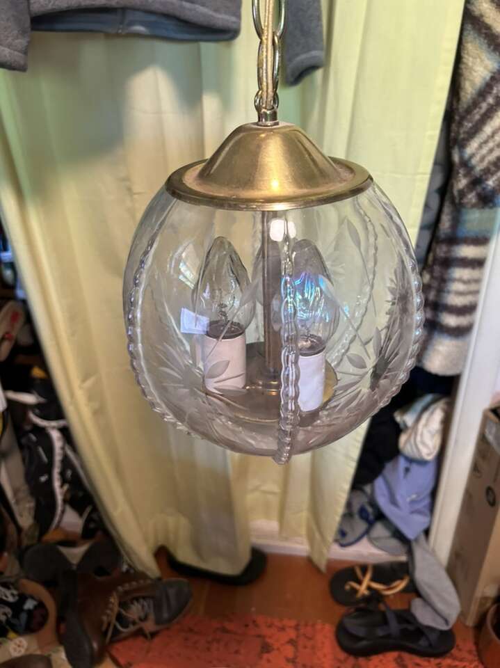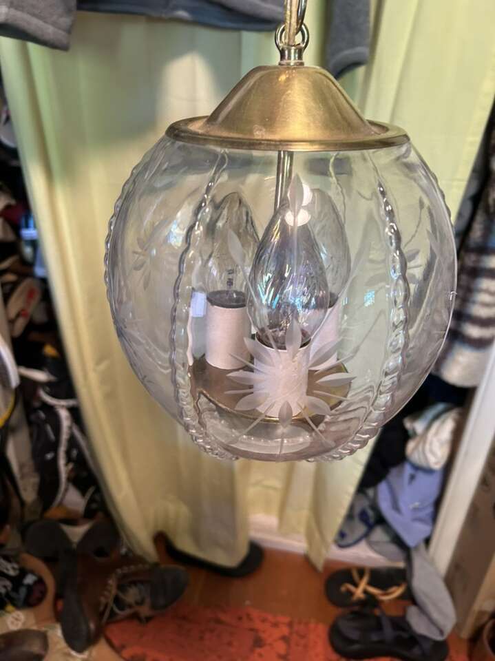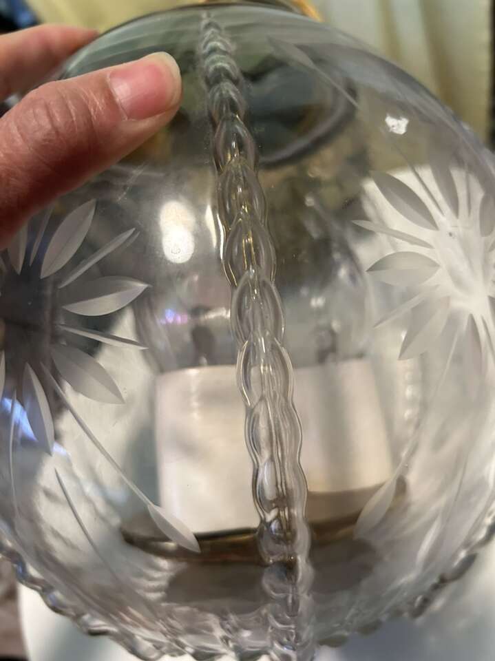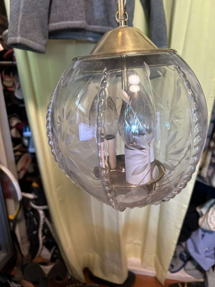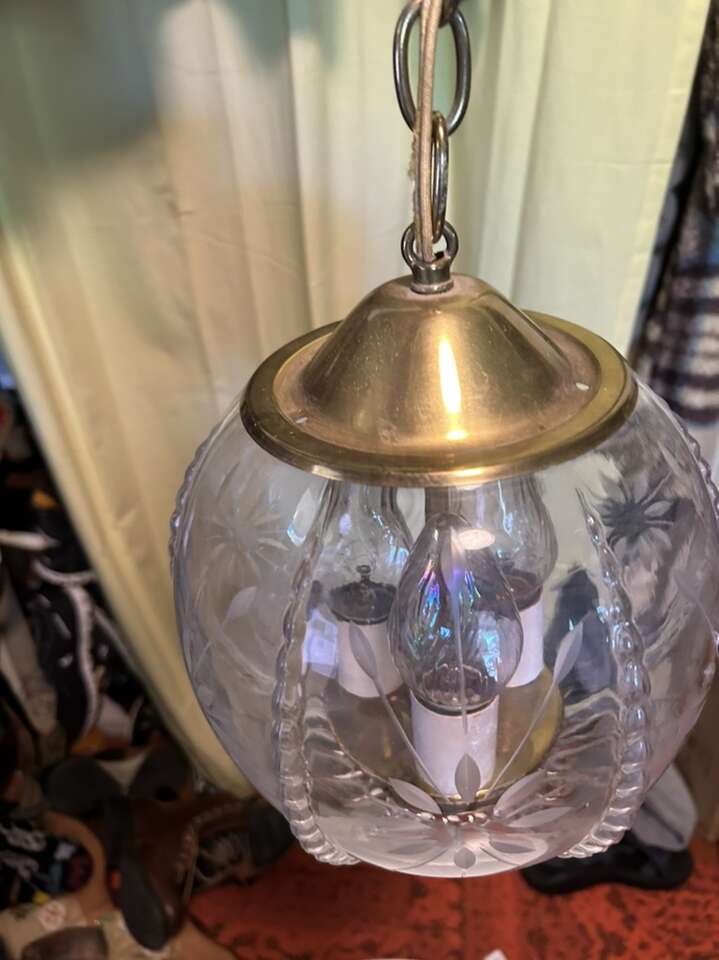 VenmoAntique Round Ornate Clear Etched Glass Pendant Light with Chain & Ceiling Cap