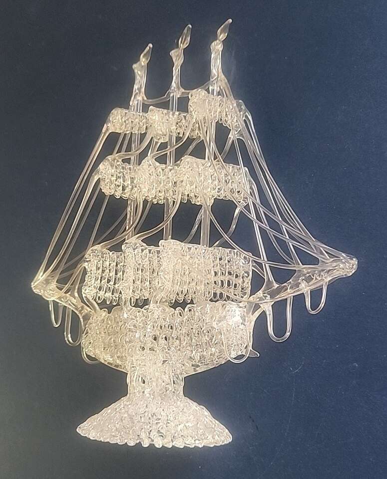 VenmoTHIS LISTING IS FOR A VERY NICE VINTAGE HAND BLOWN 3 SAIL SHIP. THIS PIECE WAS CREATED AT THE GLASS BLOWERS WORKSHOP IN VIRGINIA CITY NEVADA USA. IT STANDS 10" TALL, AND 9.5" WIDE. IT IS IN PERFECT CONDITION, WITH NO CHIPS IN THE GLASS. IT COMES IN ITS ORIGINALPACKAGING.