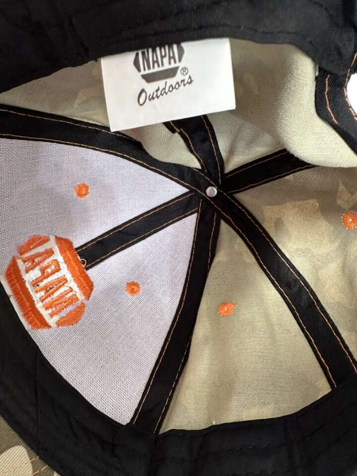 Pickup in Clearfield. Cash or Venmo. Get ready for your next outdoor adventure with the Napa Outdoors Camouflage Adjustable Hat. This stylish and functional baseball cap features an orange trim front bill, adjustable strap, and breathable material to keep you cool and comfortable in the summer, fall, or spring. The camouflage pattern adds a touch of ruggedness to your look, while the Napa Know How character and Outdoor theme give it a unique touch.