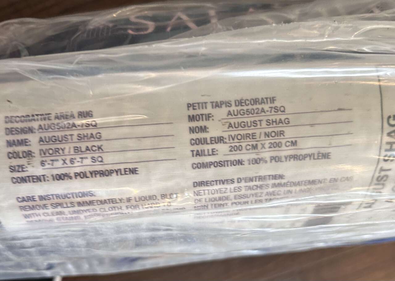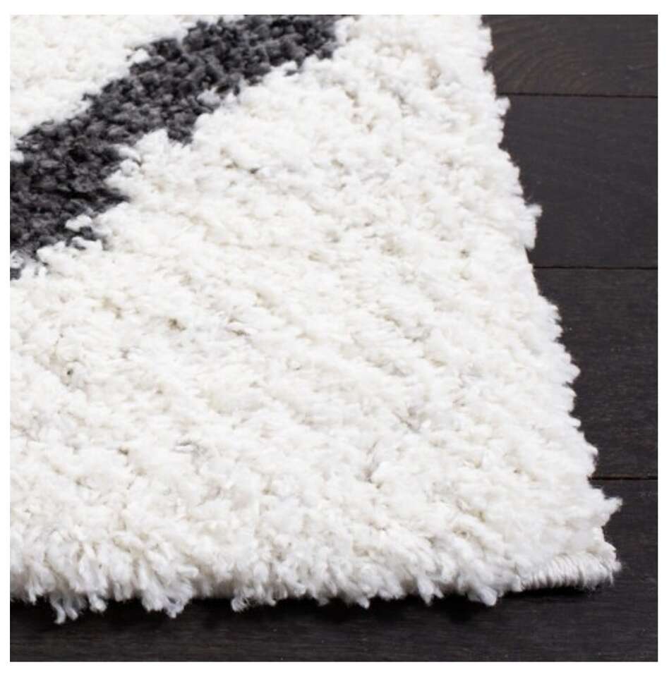 Color: Ivory/Black Size: 6'7" Square Item Weight 13.5 Pounds Fiber Content: 50% Jute, 45% Polypropylene, 5% Polyester AUG502A Construction: Power Loomed Pile Height: 1 5/8" SAFAVIEH August Shag Collection Area Rug - 6'7" Square, Ivory & Black, Trellis Design, Non-Shedding & Easy Care, 1.25-inch Thick Ideal for High Traffic Areas in Living Room, Bedroom (AUG502A)