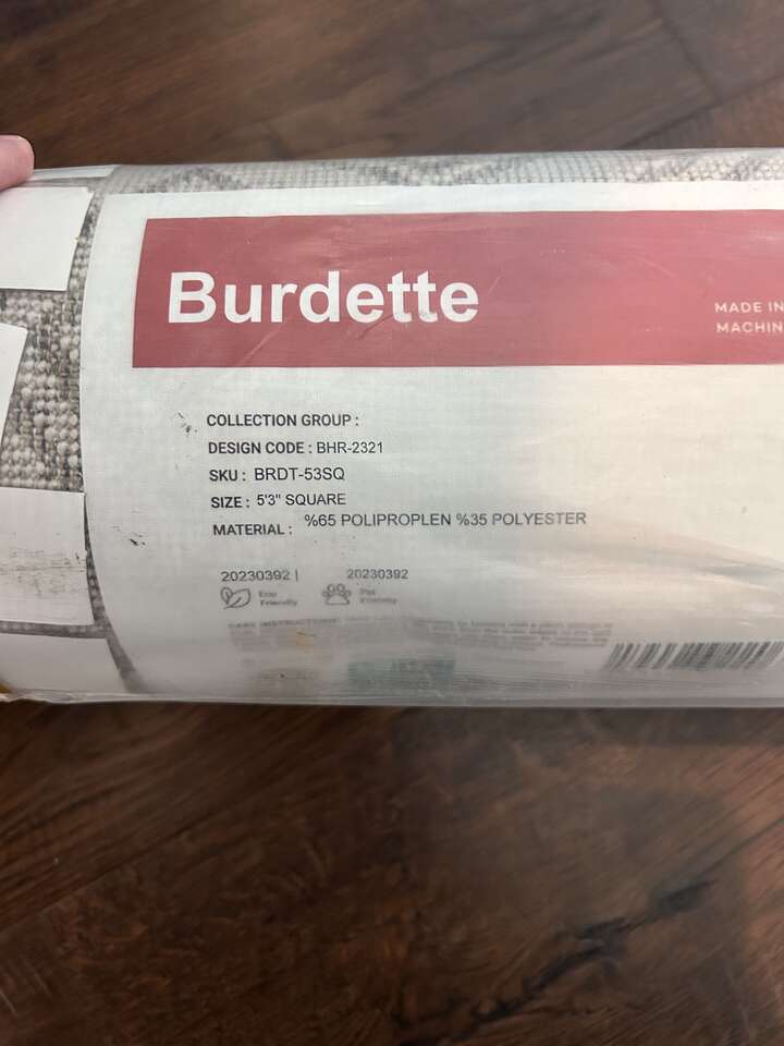 Hauteloom Burdette Living Room, Bedroom Area Rug - Transitional - Gray, Beige - 5'3 Size 5'3 Square Material 65% Polypropylene 35% Polyester Weave Type Flat Woven Item Weight 4.25 Kilograms Pile Height Medium Pile