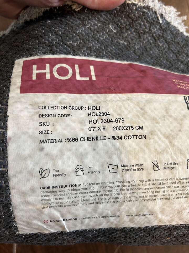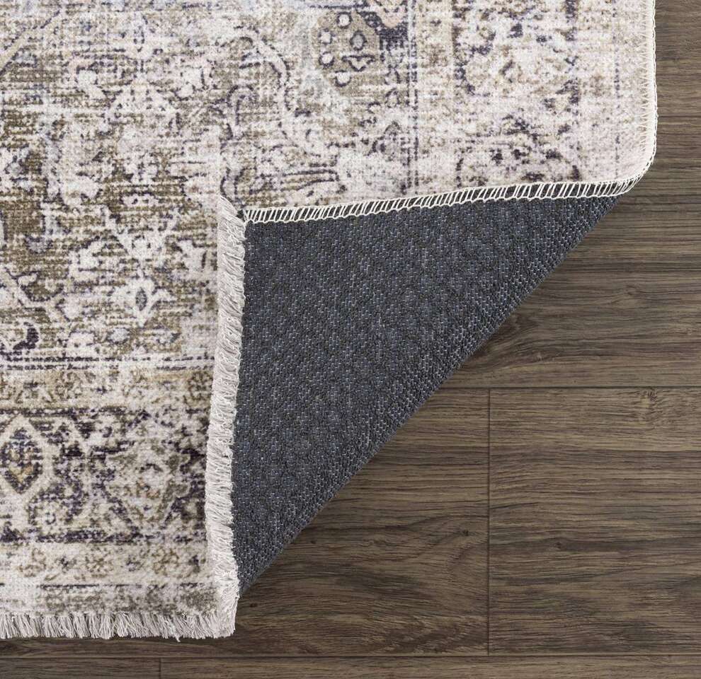 ApplePayWashable Area Rug 6'7x9' Olive Holi-2304 Collection: HOLI Material: 66% Chenille 34% Cotton Pile: Low Pile Pile Height: 0.12 Styles: Traditional,Vintage Backing: Rubber Machine Washable: Yes Thickness: 0.16 About: The olive and dark tones of green with a touch of cream make this vintage olive washable rug the perfect addition to your living room or bedroom. Featuring fringed edges that bring out its elegant texture, it'll become your favorite thing underfoot in no time. The soft pile rug feels great under your feet. It's also washable so you can keep it looking new for years. Upgrade the feel of your space with this stylish olive rug from the famous Holi line from our store.