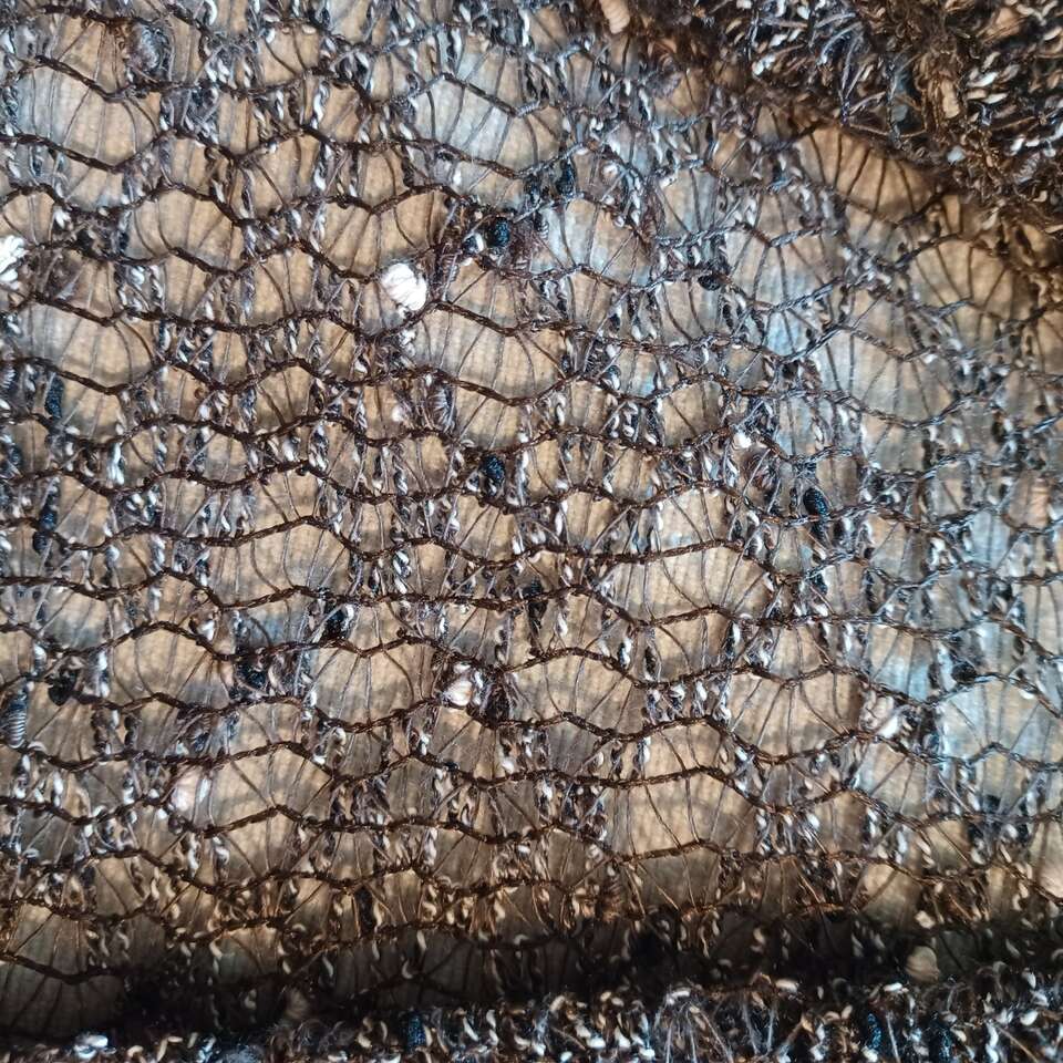 Brown and White Mesh Cardigan. Great to wear over dress or Top. Size XXL 78% Polyester 22%Cotton Machine Washable