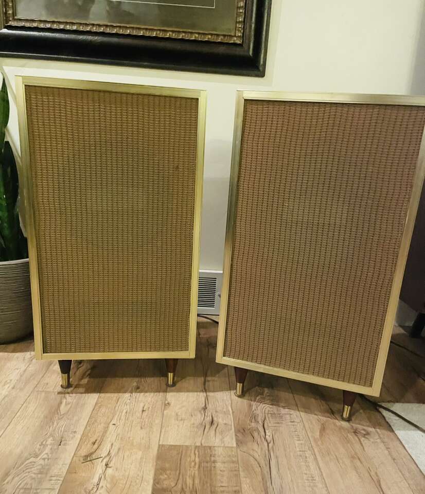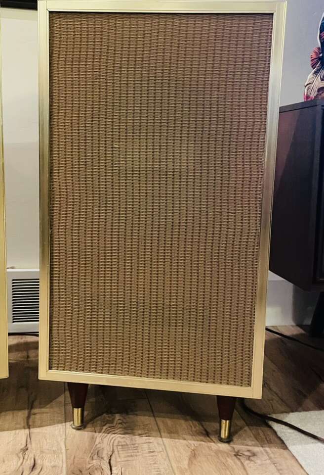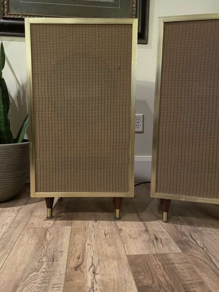 Amazing wood cabinet mcm knight speaker set in perfect condition.