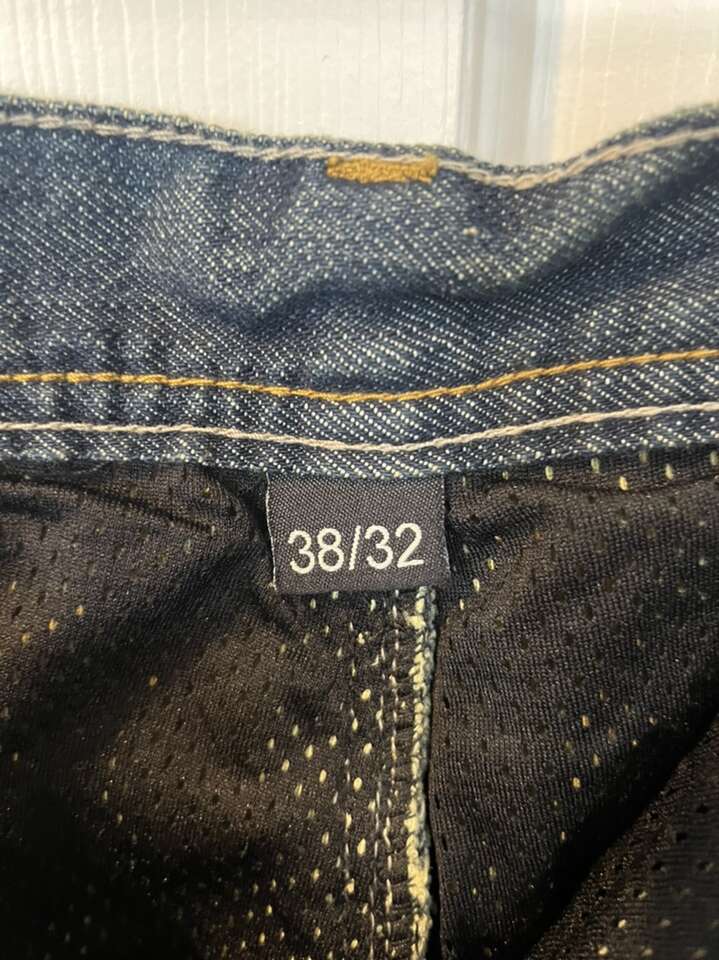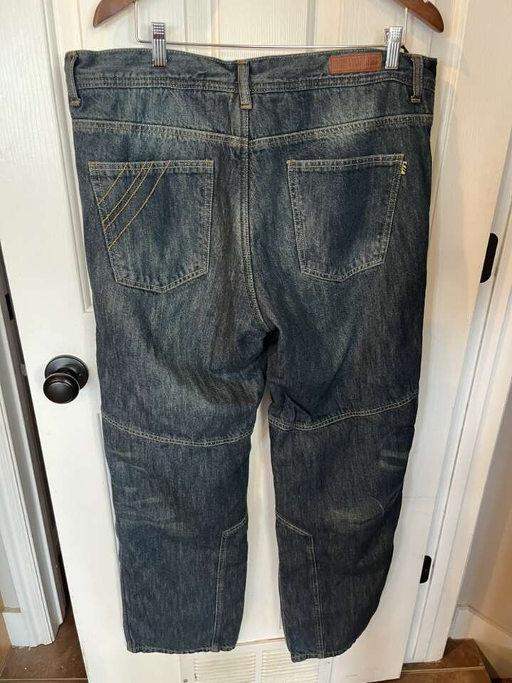 Up for sale is a pair of denim riding pants with removable knee pads. IRON WORKER BRAND. NWOT. Never worn. Thinning the inventory/cleaning the closet.
