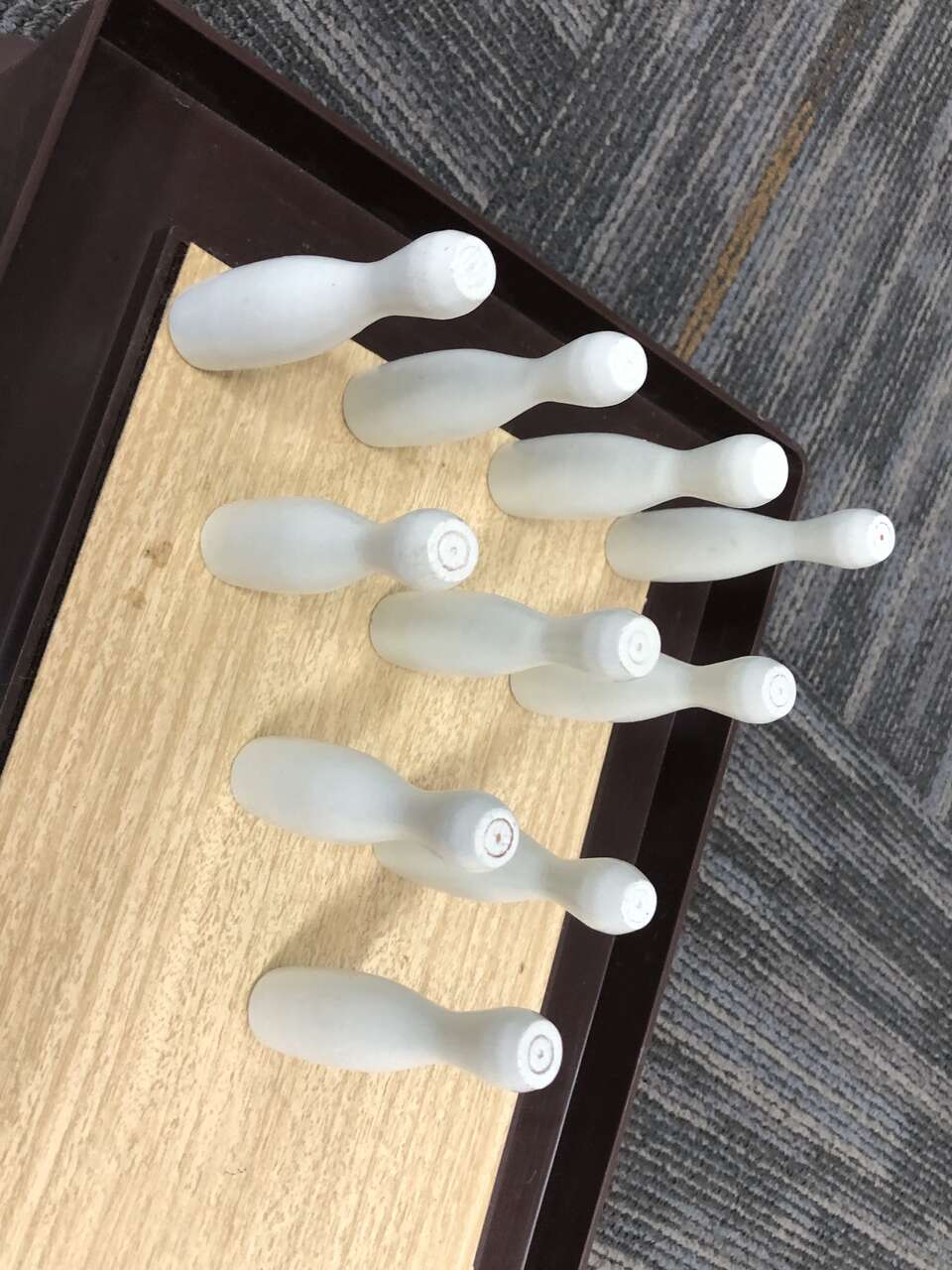 Vintage Mid Century Bowling game complete w/wooden bowling pins and bowling ball. Makes a great decoration too
