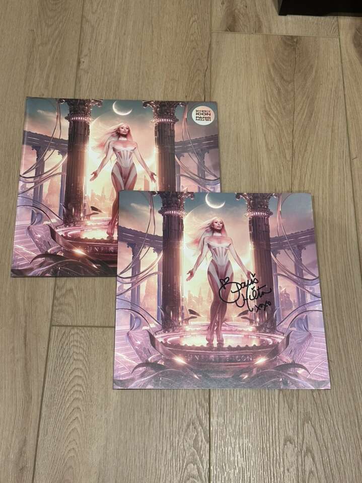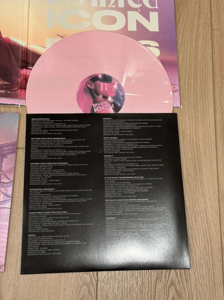 Paris Hilton’s new album on Pink colored vinyl. Comes with a SIGNED insert. It got shipped as a sealed album and the signed insert separately so I was able to take pictures of the signed insert so you can see it. I also opened the one I am going to keep for my collection so you could see all of the inside and everything too. So all the pictures of the one that is open is mine, and the pictures of the one that is sealed would be the one you would get. Still sealed and never opened or played.