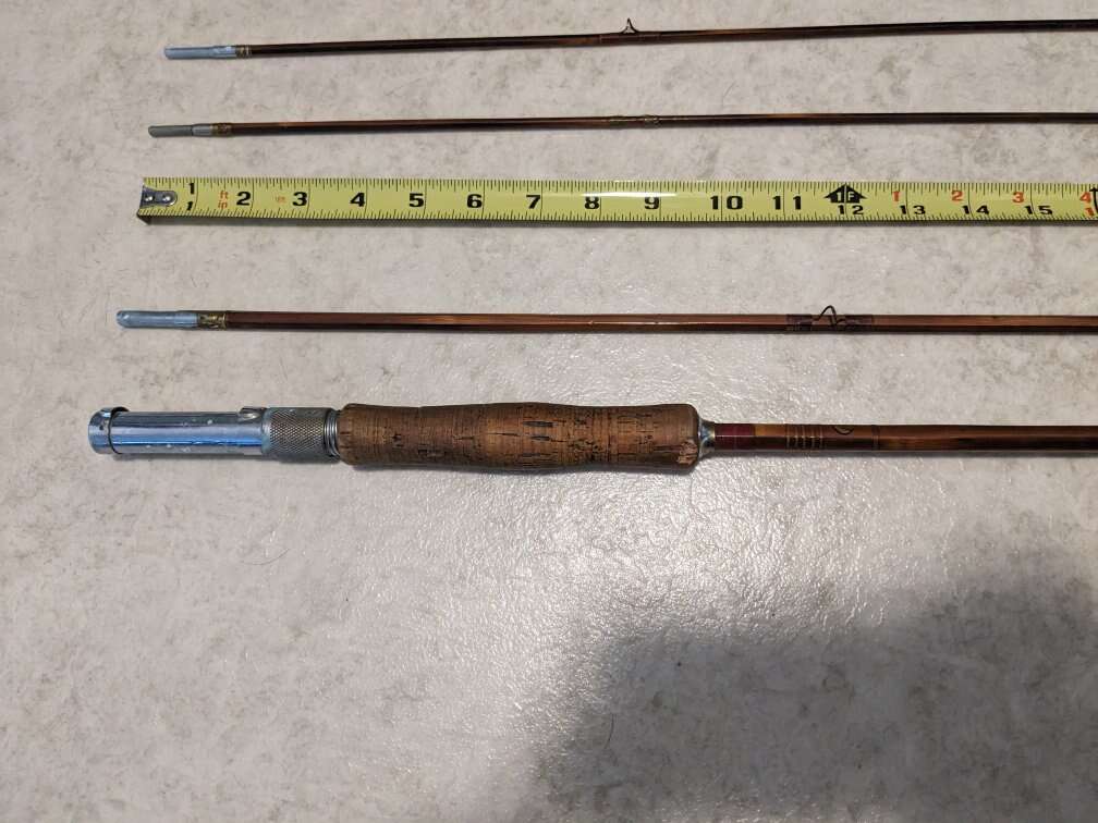 3 Antique Bamboo Fishing Rods made by Montague Flash
