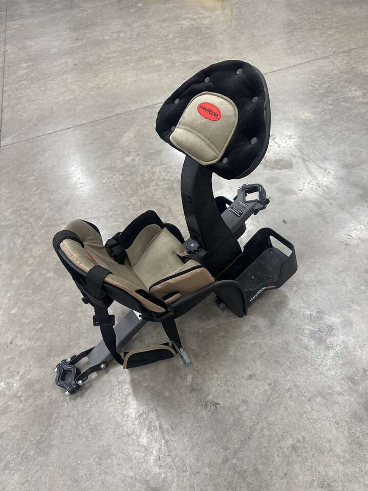 Children’s add on bike seat. Clamps onto the neck and seat post of bike. Only used a couple times and stored in the garage.