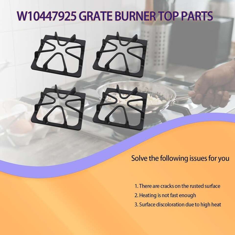 2024 Upgraded W10447925 Stove Burner Grate Replacement Parts For a Whirlpool Maytag Amana Kenmore Inglis burner replacement parts 4 Pack