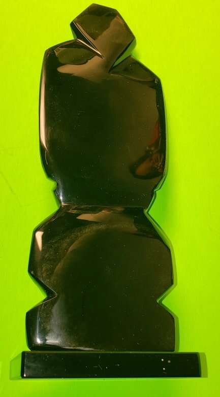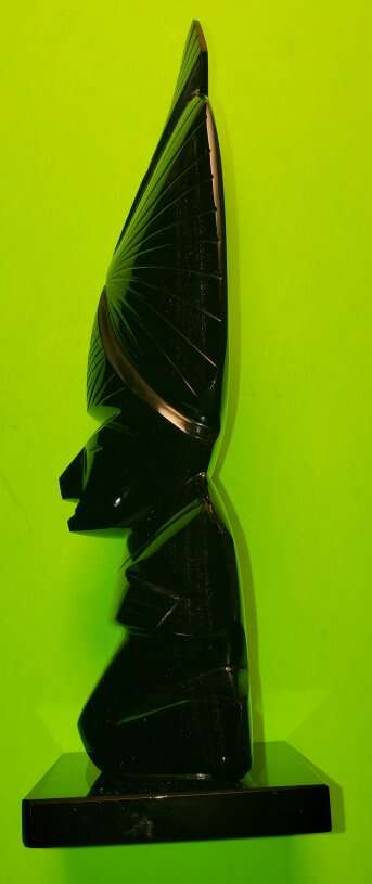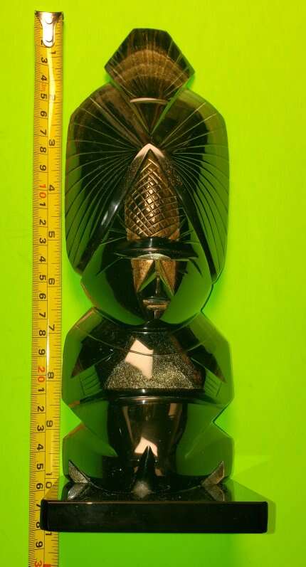 10" Totem on .50" Thick Pedestal. Aztec gold obsidian totem, handmade. Aztec art and culture has its roots in the Toltec civilization. Mexican obsidian is mined from areas such as the eastern part of Mexico where the Popocatépetl volcano is located. Obsidian is a type of volcanic glass, a rock that is formed as a result of magmatic activity, when there is a rapid contact of hot acid and viscous lava with a cold environment and subsequent rapid solidification. During volcanic activity, lava is produced, which moves under the influence of gravity and applied pressures. During the journey, it is slowly cooled by radiating heat to the atmosphere, which allows crystallization. However, there may be a case where the lava comes into contact with another environment such as water. Obsidian is formed by the contact of lava with the aquatic environment. Upon touch, the lava is rapidly cooled, which leads to the formation of a glassy structure, the water begins to evaporate due to heating and is replaced by a new unheated one, which again cools other lava flows. Text message is better, see my other adds, thank you.