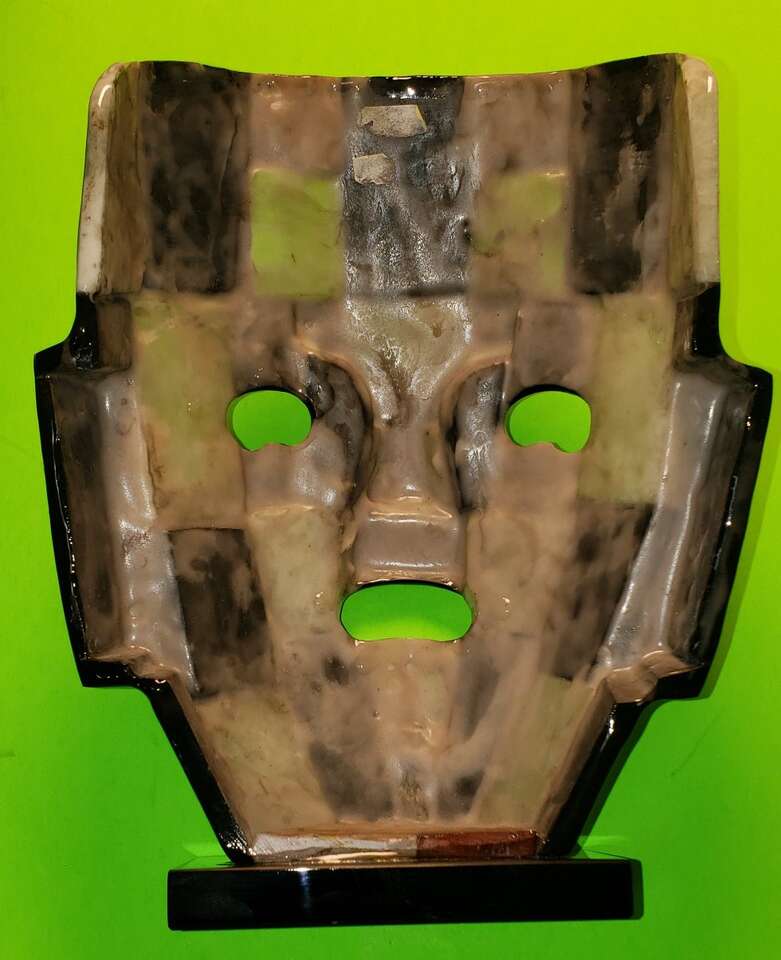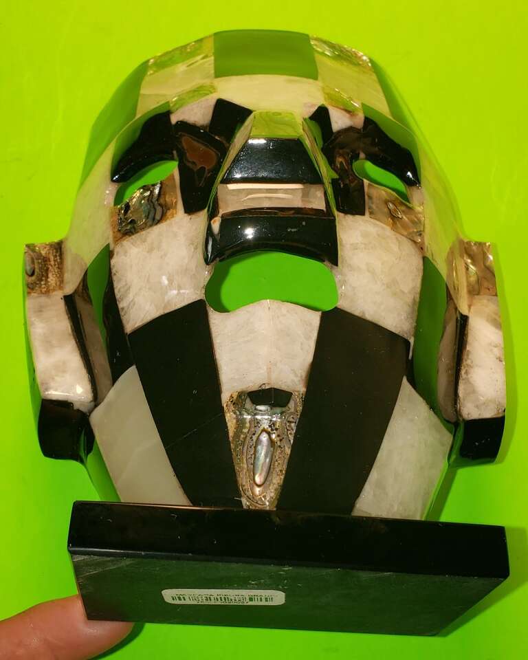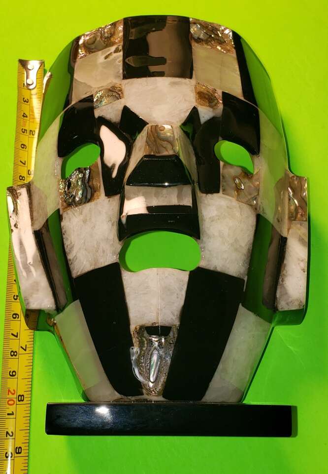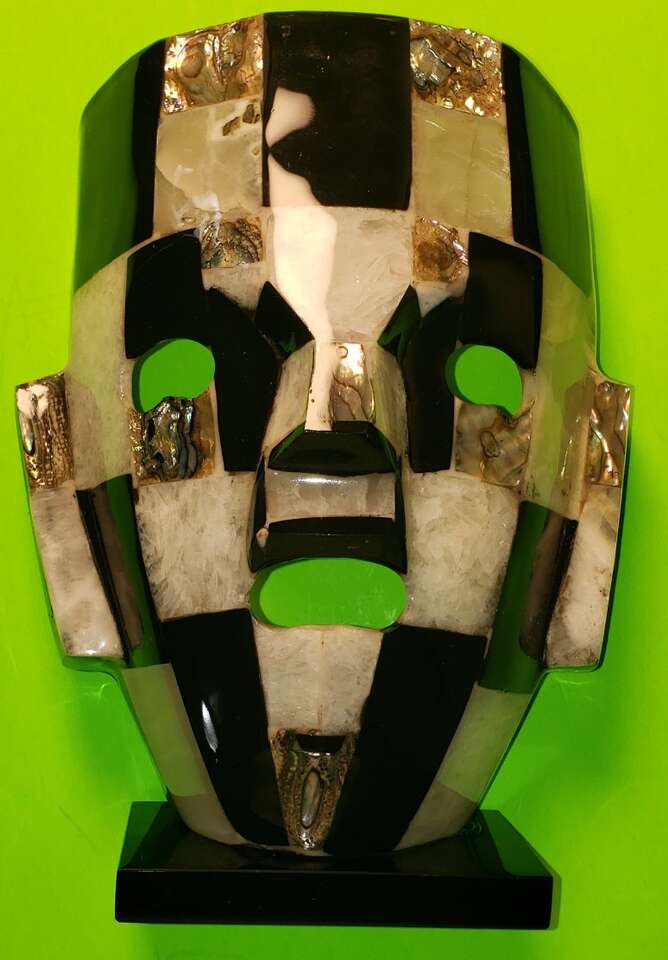 Prehispanic Mask, Marble, Pearl, Onix, Handmade Mexican Art, 8.7INCH