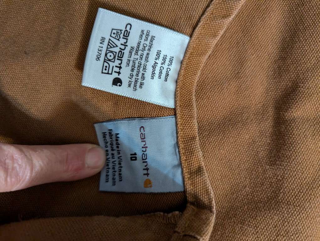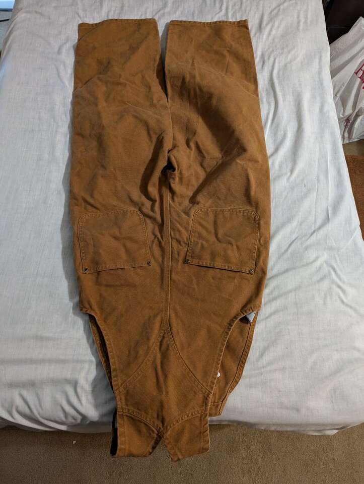 Very little wear. Size 10. Front chest pocket Front (fly) zipper. Side pockets. Back pockets.