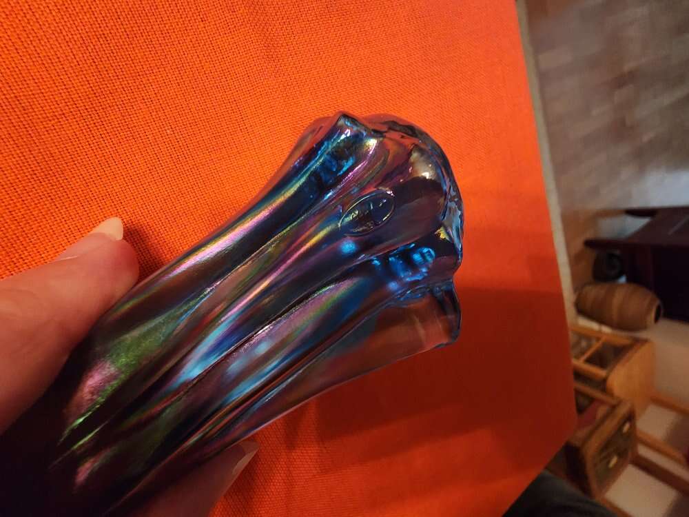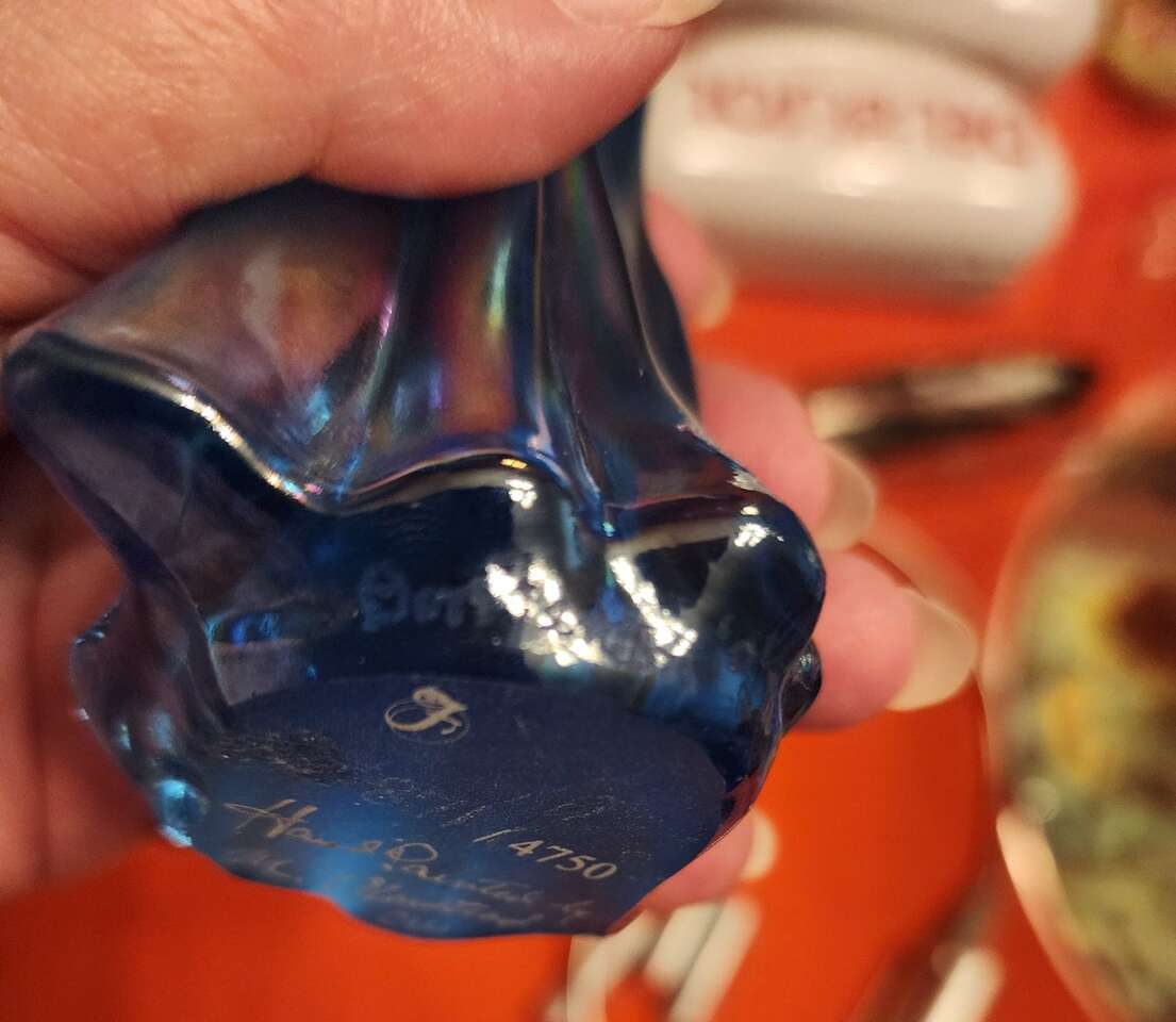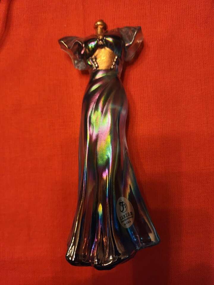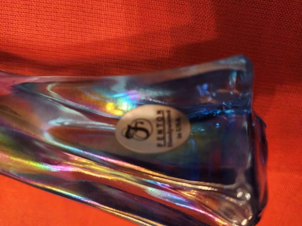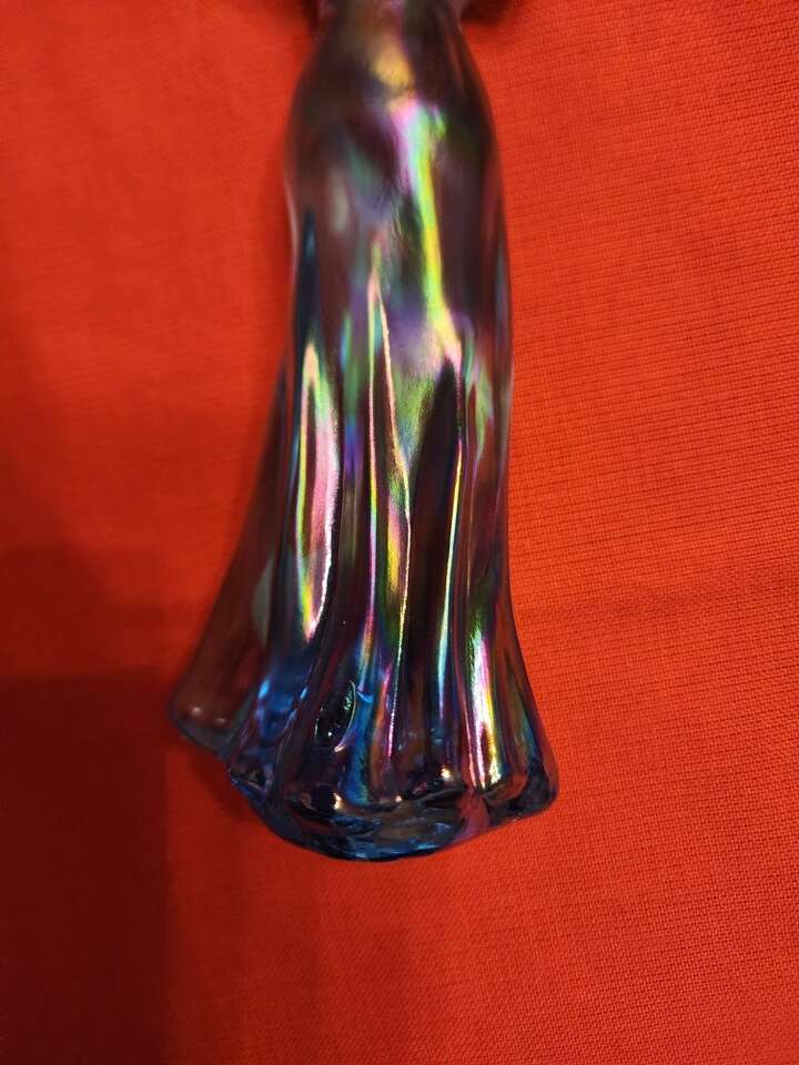 Fenton, Blue Carnival glass gown. Is 6.75" tall. 871/4750