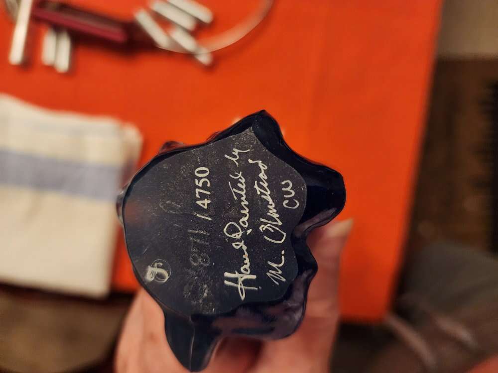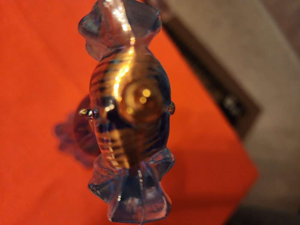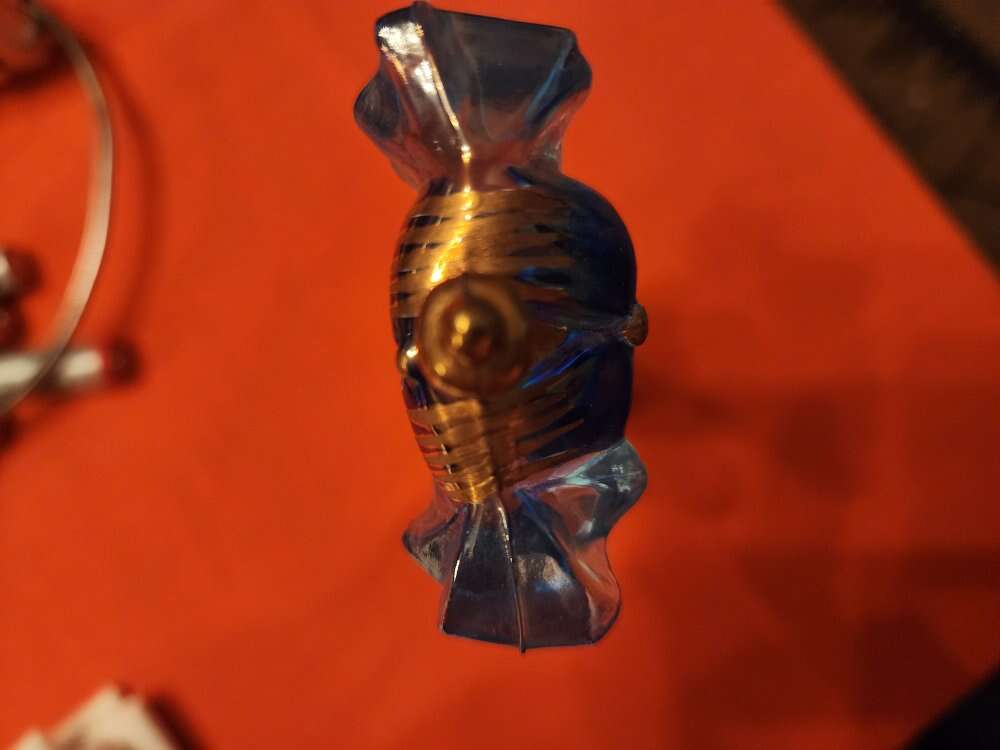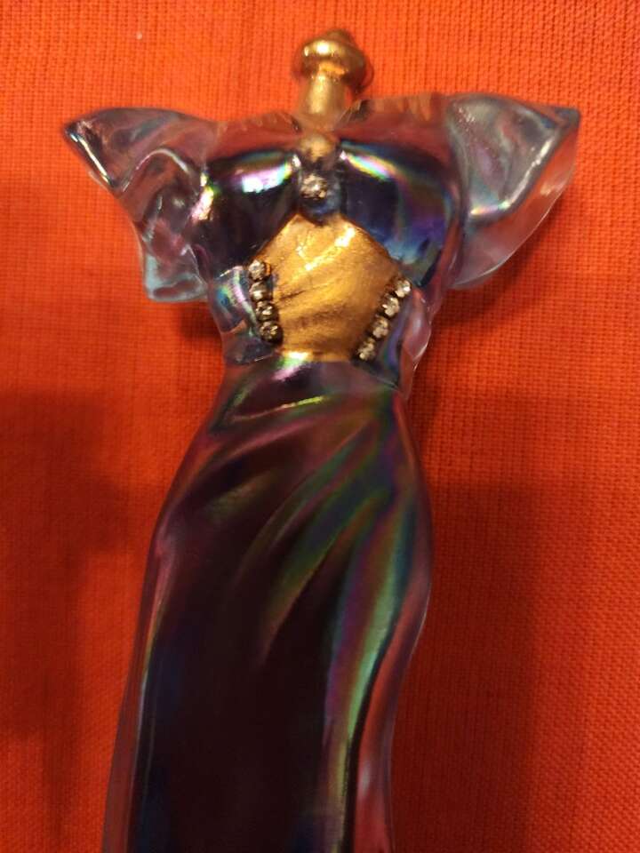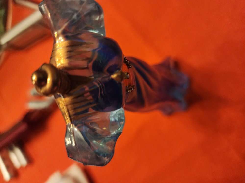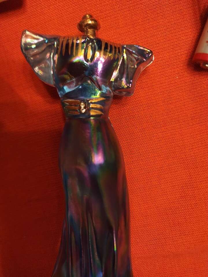 Fenton, Blue Carnival glass gown. Is 6.75" tall. 871/4750
