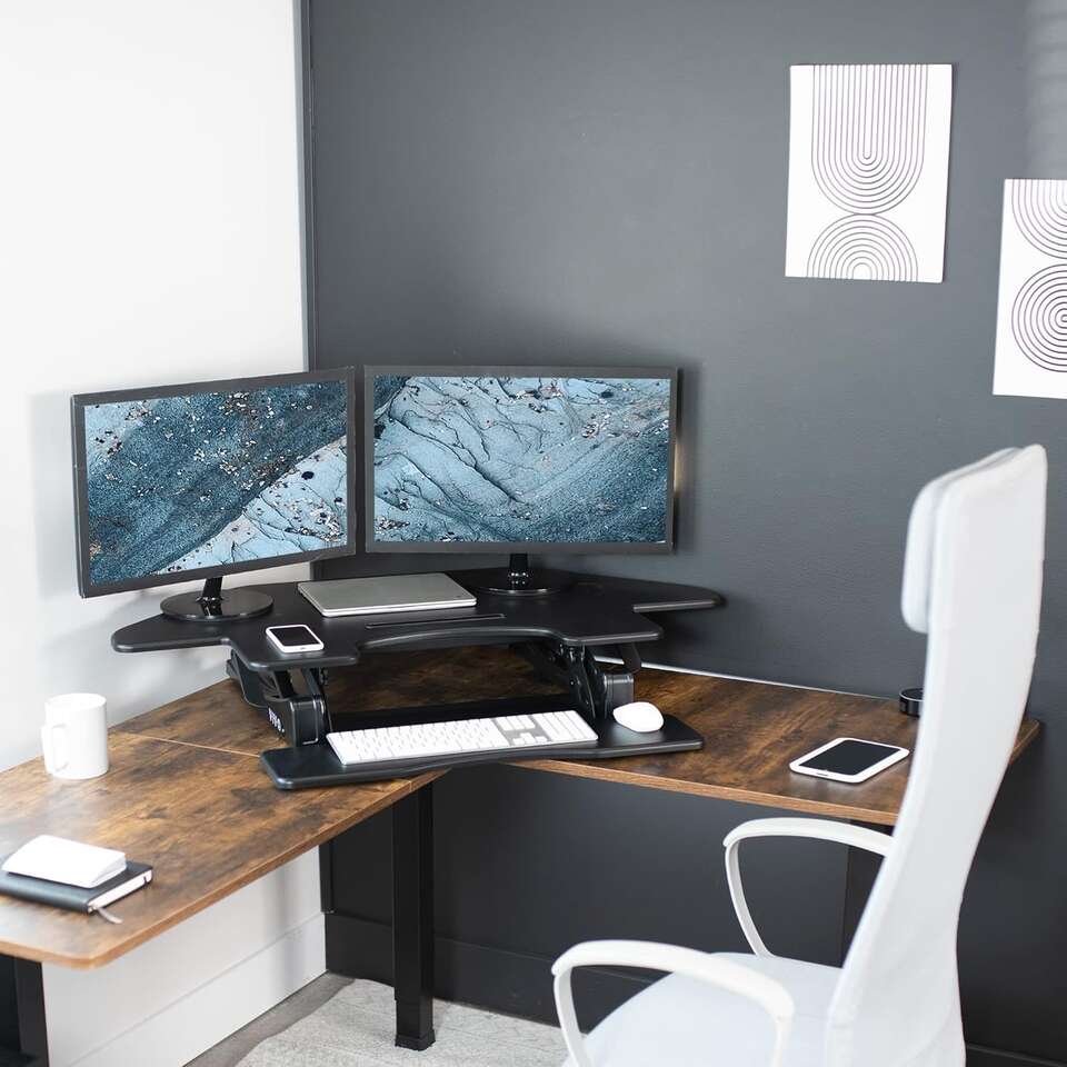 About this item - Create Instant Active Standing - VIVO's corner desk riser provides on-demand standing throughout the day for the freedom to get out of your chair and relieve muscle tension, reduce stress, and increase productivity. Works on both corner and regular desk setups. --Patented--
