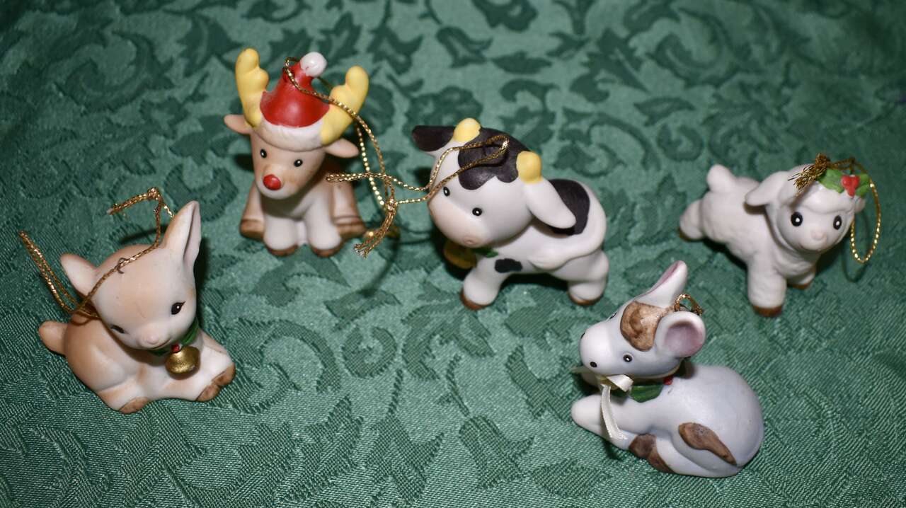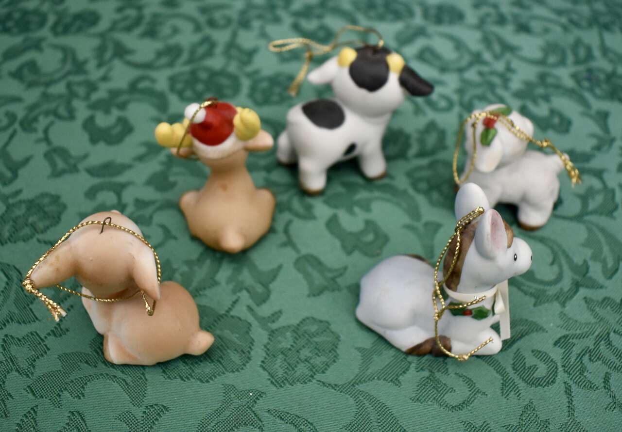 **((( *PLEASE NOTE… THE DONKEY THAT YOU SEE WITH A CREAM COLORED RIBBON AROUND ITS’ NECK HAD TO BE REPAIRED SO I GLUED IT AND THEN PUT A RIBBON AROUND ITS’ NECK. )))~~Thank You!